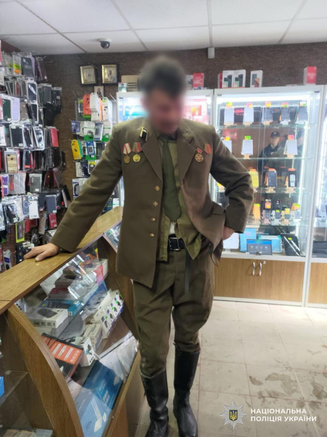 «9 травня на лінію «102» надійшло повідомлення про те, що в селищі Міжгір’я двоє невідомих пересуваються у формі солдатів радянської армії із георгіївськими стрічками. ...Фігурантів було доставлено до поліцейського відділку», – йдеться в повідомленні.