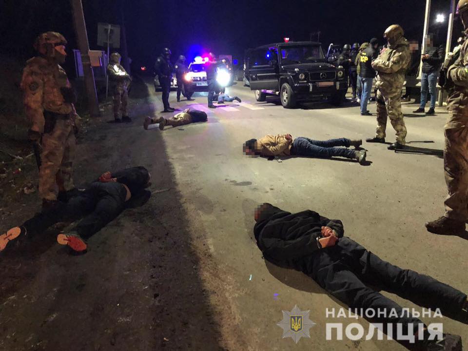 Лідер злочинної групи пересувався на броньованому автомобілі. З місця події вилучено транспортні засоби та зброю.