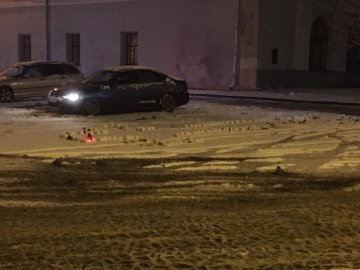 На Замковій площі в Луцьку молодики влаштували дрифт та розтрощили лампадки. Фото