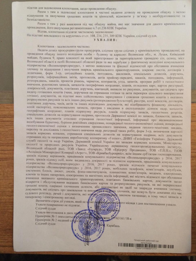 Згідно з ухвалою суду вилучаються документи, зокрема оригінали рішень, протоколів, копії інших документів.