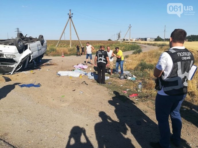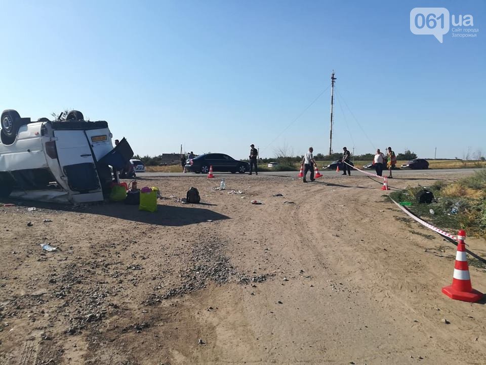 Маршрутка везла відпочивальників із Кирилівки. Зіткнення сталося близько 14:00 на трасі Харків-Сімферополь. Від потужного удару мікроавтобус вилетів з дороги і перекинувся на дах. Вантажівка злетіла в кювет.