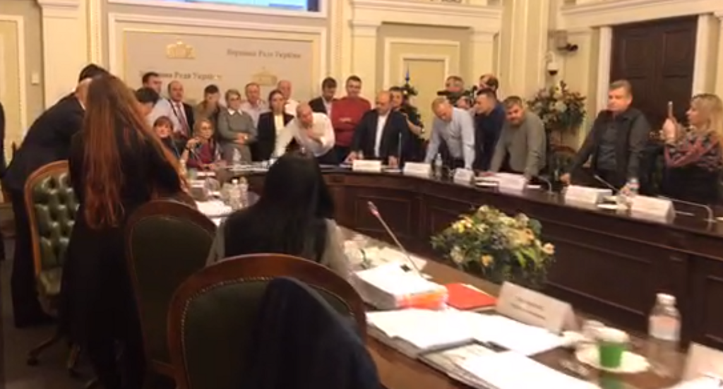 Голова комітету Микола Сольський хотів розглядати поправки до ранку, поки не переглянуть всі, аби вже 19 грудня внести законопроект в залу ВР. Однак депутати фракцій «Батьківщина» та «Опозиційна платформа - За життя» заблокували його місце, відштовхнувши «слуг народу», і стали вимагати оголосити перерву.