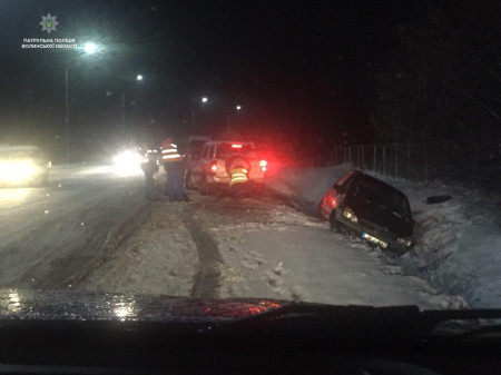 Поруч саме проїжджав екіпаж патрульних. Завдяки професійним водійським навичкам інспекторів, службовому автомобілю Isuzu і небайдужим громадянам легковик витягли на трасу.