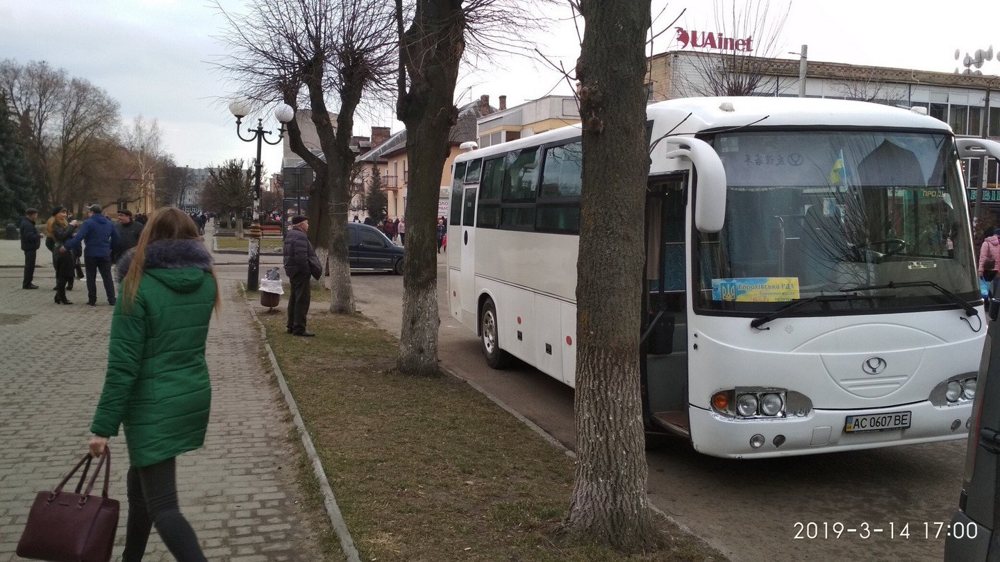 Попри те, що на Гаранта очікували від самого ранку 14 березня у Луцьку, Петро Порошенко відвідав надвечір лише Ковель. Спостерігач ОПОРИ за декілька годин до прибуття Петра Порошенка зафіксував понад десять автобусів, які припаркували поблизу площі Героїв Майдану у Ковелі. Один із них мав табличку, на якій було написано «Горохівська РДА», інформує прес-служба ОПОРИ.