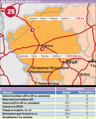 Хоча через Волинь проходять автомобільні коридори на Польщу та Білорусь, аварійність на тутешніх трасах порівняно невисока, – зазначають автори дослідження.
