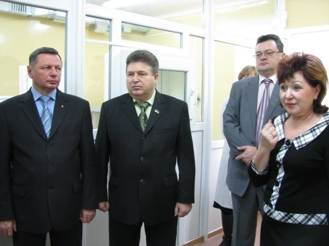 Червону стрічку дружно перерізали голова Волиньради Анатолій Грицюк, голова Волинської ОДА Микола Романюк та депутат Віктор Чорнуха. На пам’ять відрізок стрічки вручили головному санітарному лікарю Волині Наталії Янко.