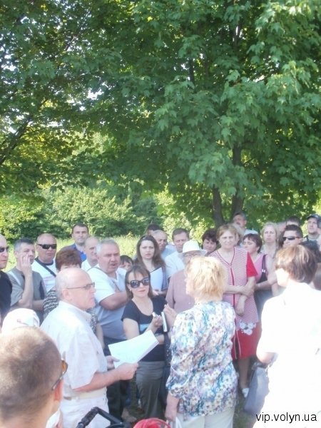 До учасників акції протесту у вівторок 24 травня прийшли депутат, що балотувався у цьому окрузі - Олександр Семенюк, а також заступник луцького міського голови Лариса Соколовська, начальник управління містобудування та архітектури, головний архітектор Юрій Казмірук, член земельної комісії Роман Бондарук та забудовник - генеральний директор, голова правління ЗАТ «Луцький домобудівельний комбінат» Руслан Вайман.