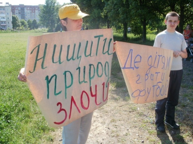 Близько ста мешканців 40-го мікрорайону Луцька 24 травня зібрались у парку біля університету «Україна» з вимогою не дозволити забудову на території футбольного поля.