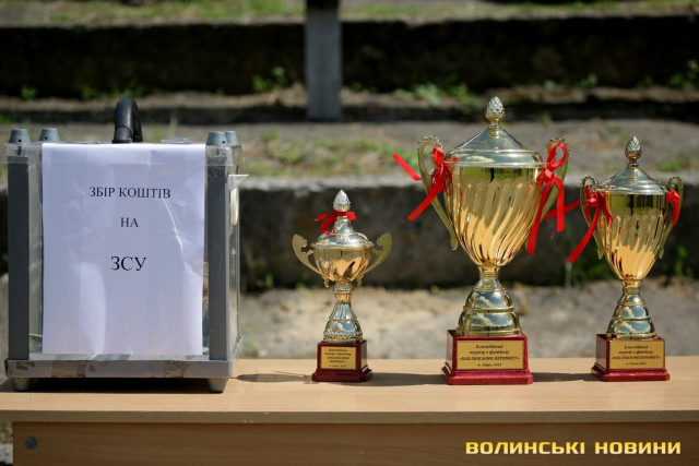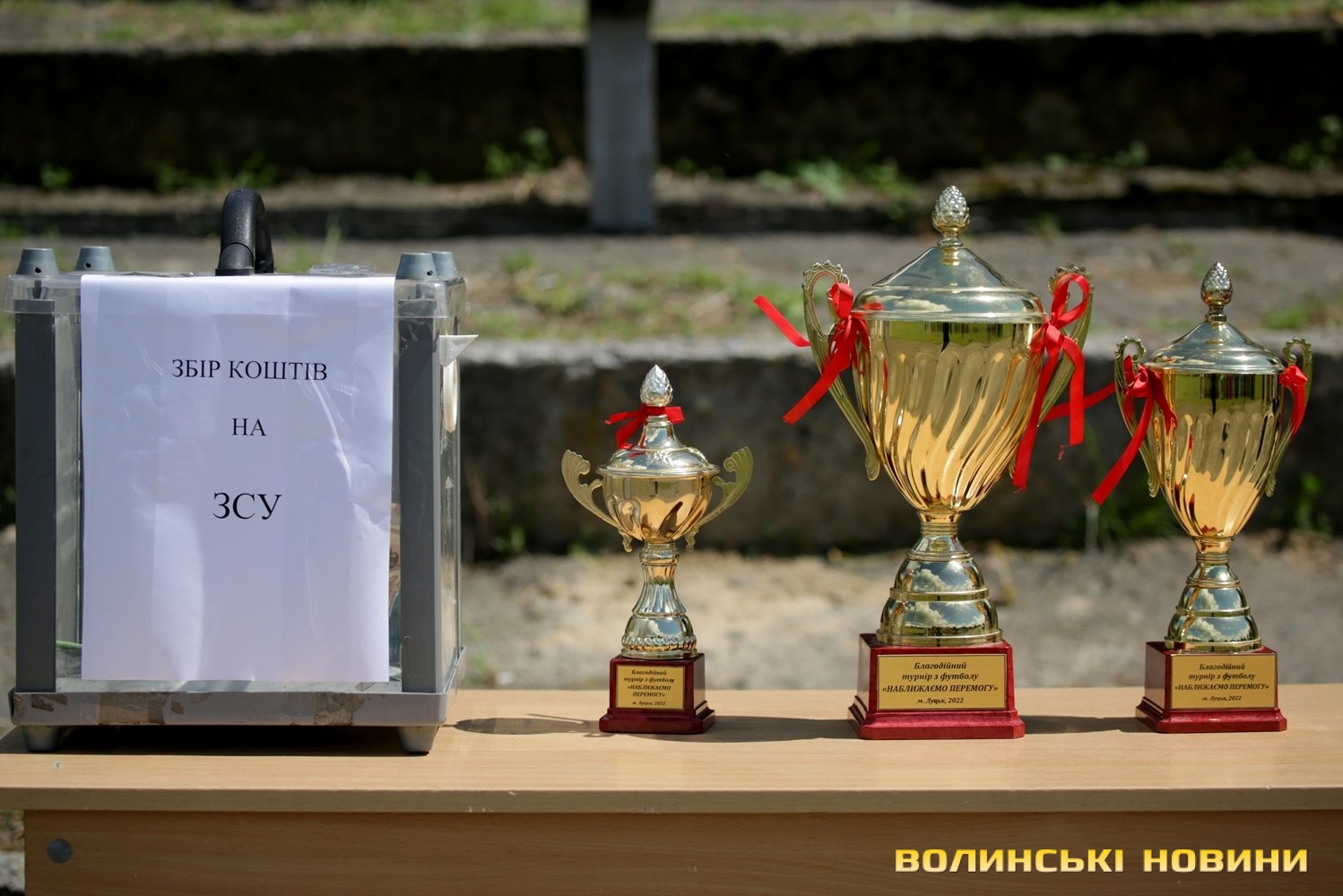 «Наш футбольний турнір став продовженням благодійних акцій «Наближаємо перемогу». Усі зібрані гроші передамо на потреби ЗСУ, а саме для нашої 14 бригади. Бо завдяки воїнам ми можемо проводити такі турніри та відносно спокійно почуватися на Волині», – зазначив директор КЗ ДЮСШ №4 Віктор Калюх.Загалом у турнірі взяли участь дванадцять команд, які спочатку розіграли місця в групах, а потім, згідно зайнятих сходинок, вийшли у півфінали золотого, срібного та бронзового кубків.«Радію, що нам вдалося організувати благодійний турнір із футболу аж серед дванадцяти команд. Було помітно, що футболісти скучили за грою, тож віддавалися на всі сто. І більшість нічийних результатів ігор – тому доказ. Внесок на турнір становив 500 гривень з команди, але футболісти й глядачі зібрали для волинських воїнів 10 тисяч 700 гривень, за що їм низький уклін», – поінформував один з організаторів турніру Андрій Собуцький.Золотий кубок завоював «Акцент» (Княгининок). У півфіналі вони у серії пенальті обіграли напівпрофесійний «Вотранс». Долю золотого кубка також вирішила серія пенальті, у якій княгининці були влучніші за «Забороль». Срібний кубок виграв «Хавест- Агро» (Підлозці, Рівненська область), а бронзовий – «Торчин U-19».