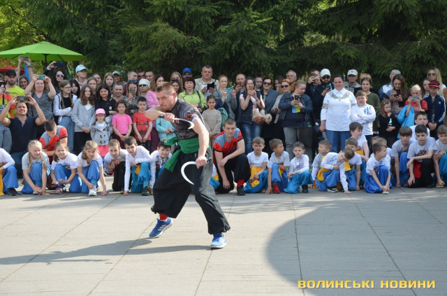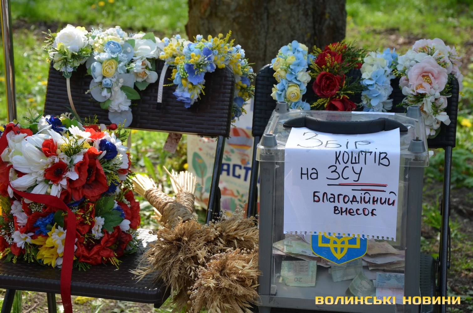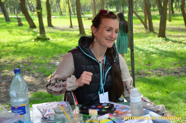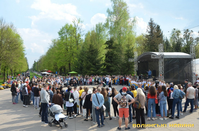 У Луцьку в Центральному парку культури та відпочинку імені Лесі Українки влаштували благодійний марафон «Наближаємо перемогу». Тут і виступи творчих колективів, і патріотичні фотозони, і намети, де можна зробити незвичний мейк, і ярмарок, де продають усе, що завгодно (від блакитно-жовтих кексиків чи стрічок у волосся до шкіряних виробів ручної роботи).