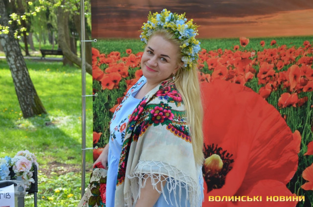 Крім солодощів і сувенірів, на ярмарку в парку можна придбати футболки, шкіряні сумки, портфелі чи гаманці, скляні вироби тощо.Також тут можна зробити патріотичний знімок на фоні прапора чи банера з маками, нанести незвичний мейк, послухати живу музику чи оцінити виступи танцювальних колективів із Луцька.
