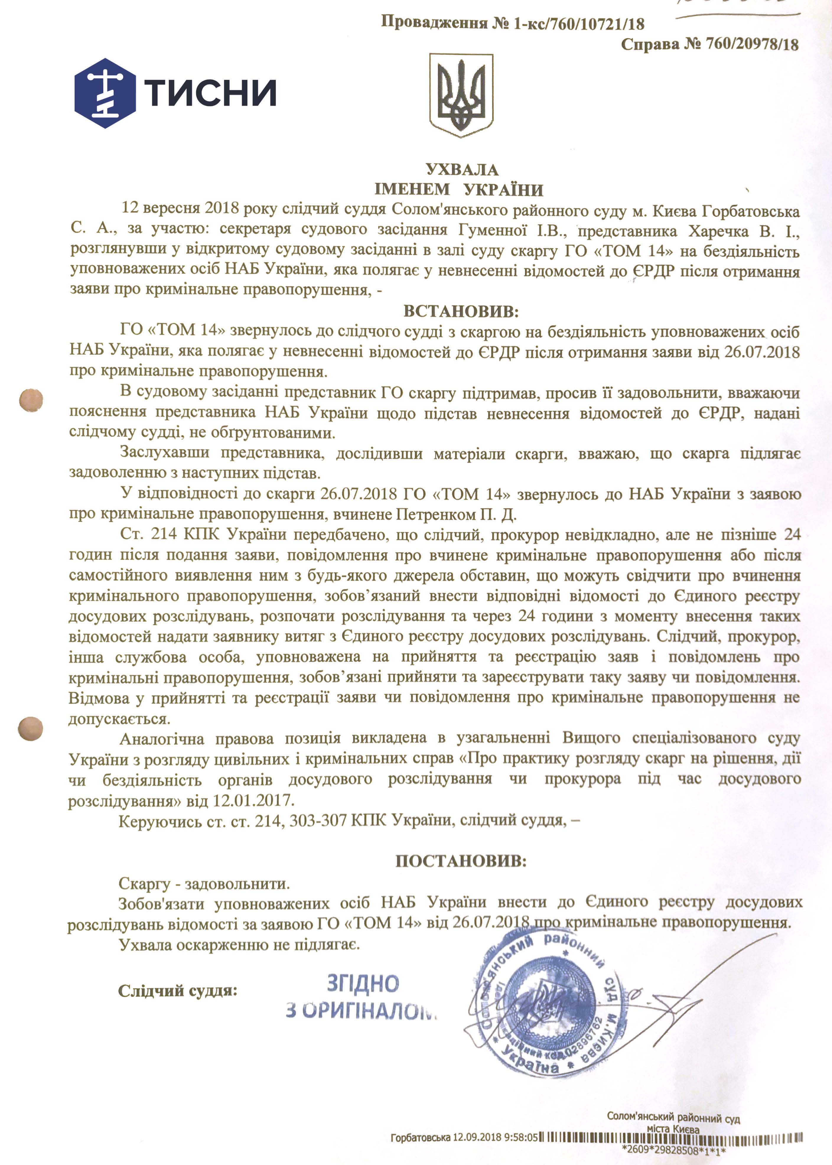 У середу, 13 вересня, Солом’янський районний суд столиці зобов’язав Національне антикорупційне бюро (НАБУ) відкрити провадження щодо міністра юстиції Павла Петренка за підозрою у декларуванні недостовірної інформації.