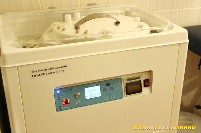 Лікар розказав, що перед прийомом кожного пацієнта обладнання необхідно дезінфікувати. «Медичний заклад спеціально з цією метою придбав нам відповідну мийну машинку. Ми перші на Волині отримали таку техніку. Раніше всі апарати обробляли вручну. А зараз заливаємо дезінфікувальні розчини, спирт, обладнання миється, а потім видається бланк про те, що техніка стерильна й можна проводити огляд пацієнта».Як зауважив Роман Гаврилюк, невдовзі у відділенні може запрацювати електронна черга. Так, у кабінеті вже встановлено комп’ютерну техніку й проведено інтернет.Також лікар перерахував основні симптоми, за наявності яких варто пройти ендоскопічну діагностику. Це: