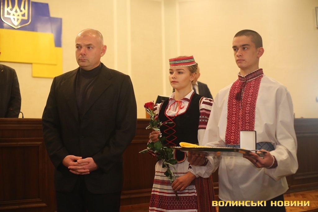 Відзнаку почесного громадянина Волині посмертно отримав боєць АТО Олег Твердохліб, відзнаку вручили його дружині. Ігор Палиця зазначив, що Олег Твердохліб неодноразово доводив, що любить Україну та готовий за неї померти. Голова облради пообіцяв надалі допомагати усім героям та родинам тих, хто захищає Україну.