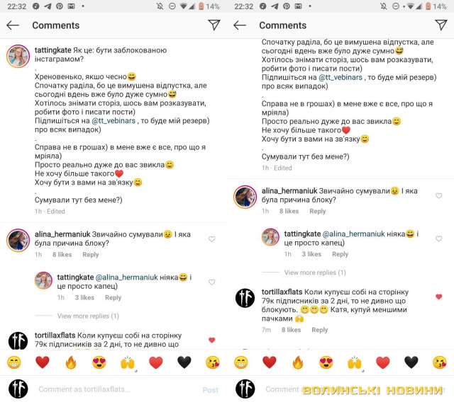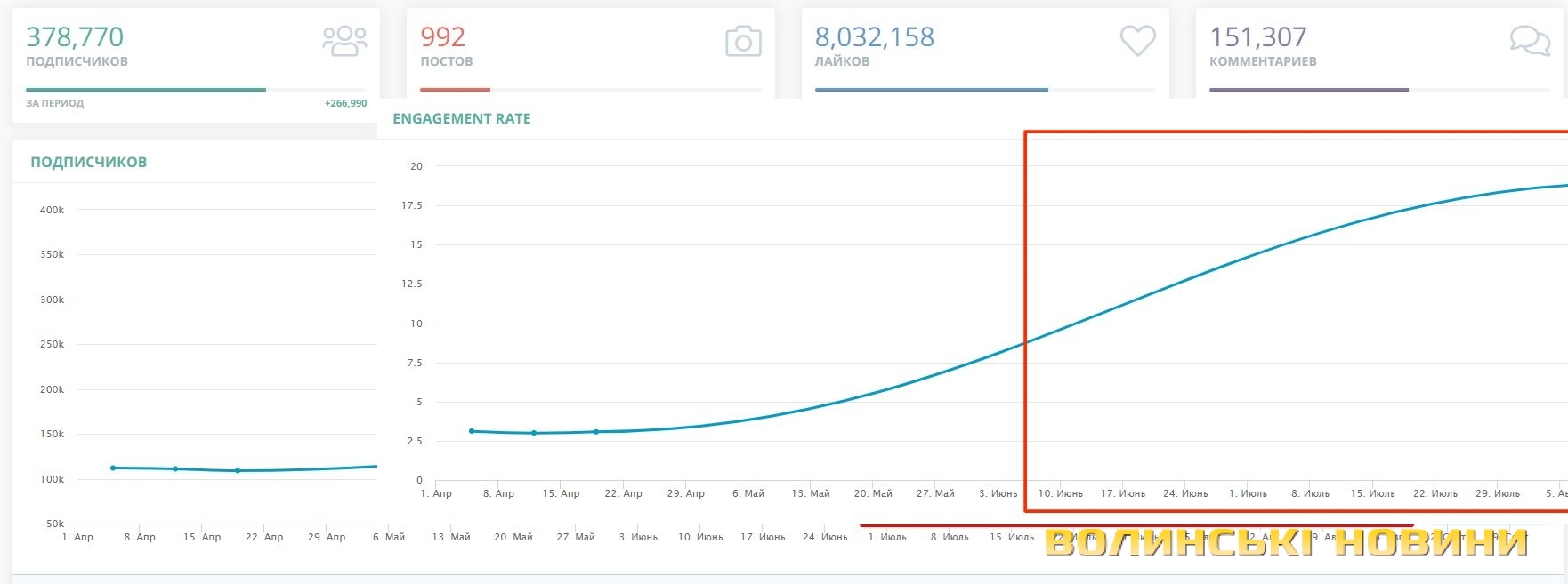 «Помітно, що ріст активності на сторінці спричинений умовами розіграшів, а не корисним контентом блогера. До речі, чому я допускаю думку про накрутку? Якраз тому, що в період пікового сплеску кількості підписників активність на сторінці значно впала. Якби ж це були користувачі, дійсно зацікавлені в контенті, які прийшли за експертністю блогера – вона мала би зростати. Про це також свідчить активність самого блогера, адже Катя не припиняє працювати над сторінкою та кількість її публікацій тільки зростає», – пояснює Катерина Лук’янчук.