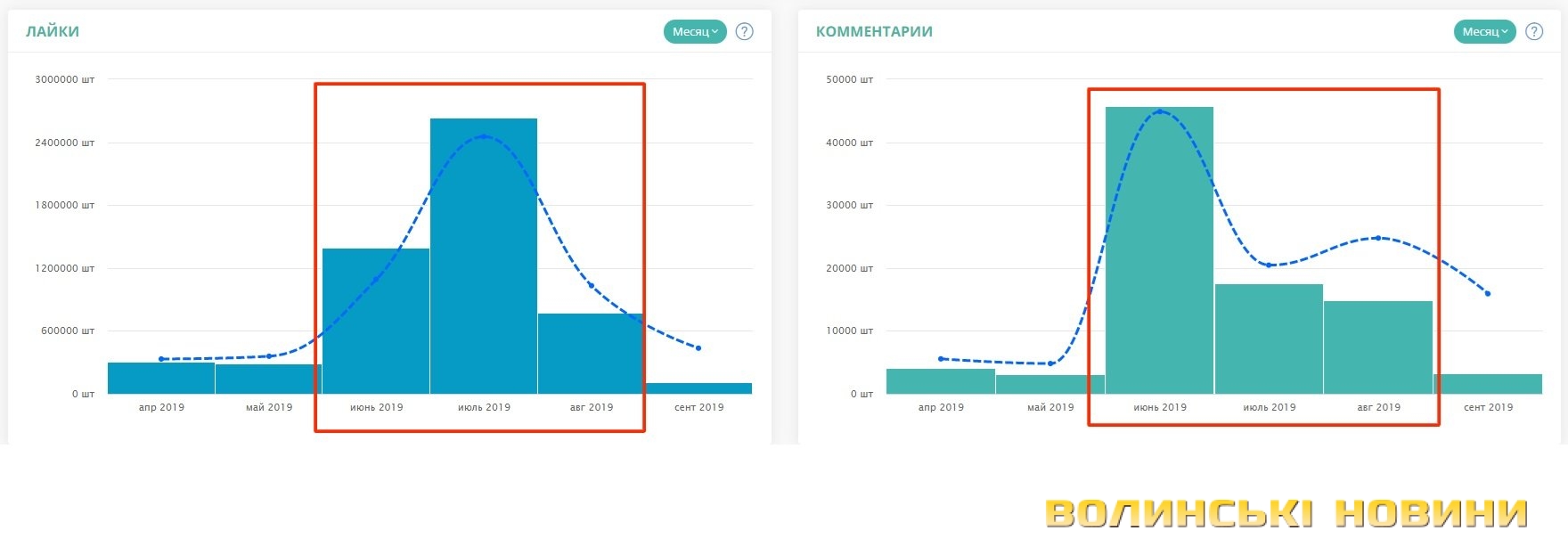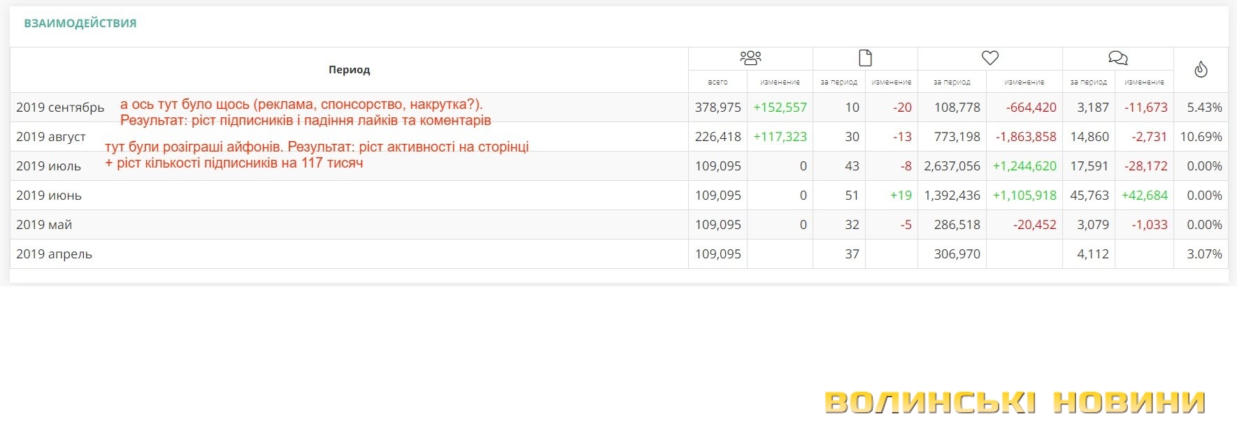 В цифрах це виглядає наступним чином.динаміка лайків та коментарів до публікацій на сторінці