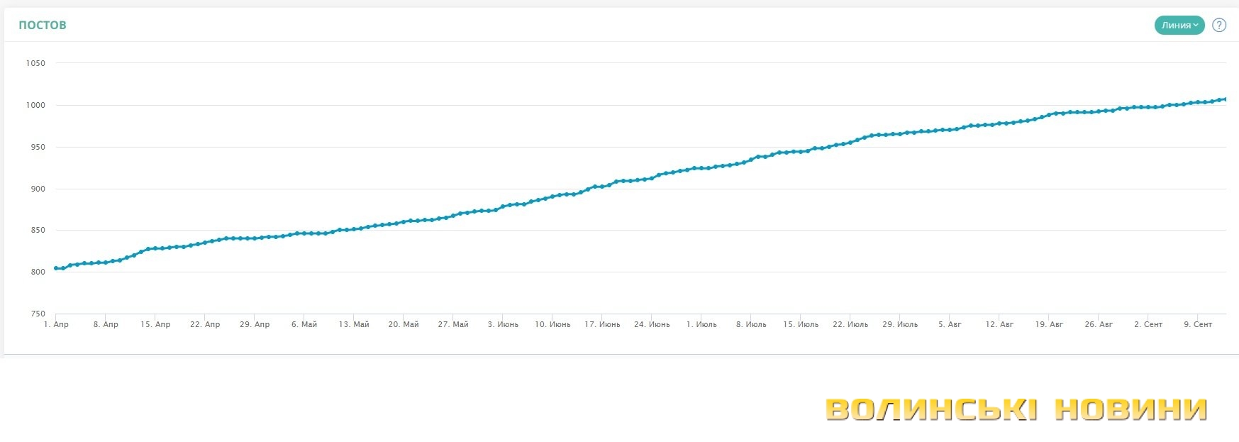 Якщо аналізувати її блог, то ми бачимо кілька різких підйомів кількості підписників та активності в акаунті. Візьмемо останні 5 місяців (скріншоти демонструють статистику за період з 1 квітня до 13 вересня 2019 р.). Допускаю, це саме той період, коли вона почала активно думати над майбутньою стратегією росту та втілювати її в життя», – пояснює Катерина.