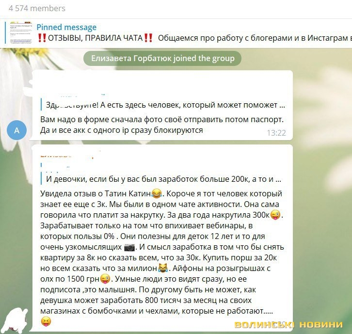 Дорожчий відрізняється тим, що створюється чат в телеграмі і ми маємо можливість спілкуватися з Катьою, та питати все по курсу. Так так, чат коштував 1000 грн, +1800 три урока. Прослухавши ці 3 уроки, я нічого нового не дізналася. Катя весь час рекламувала себе як хорошого блогера (тоді я вірила навіть, що всі погані). Цитую: «Співпрацюючи з іншими блогерами ми лишимось з голою сракою». В наші обов’язки входить шукати лишень спонсорів, більше нічого (це щось схоже на особисте стадо менеджерів , які приносять «мамці» гроші). Ми йшли на курс вчитися заробляти, а не щоб на нас заробляли. Реальність жорстока. ⠀