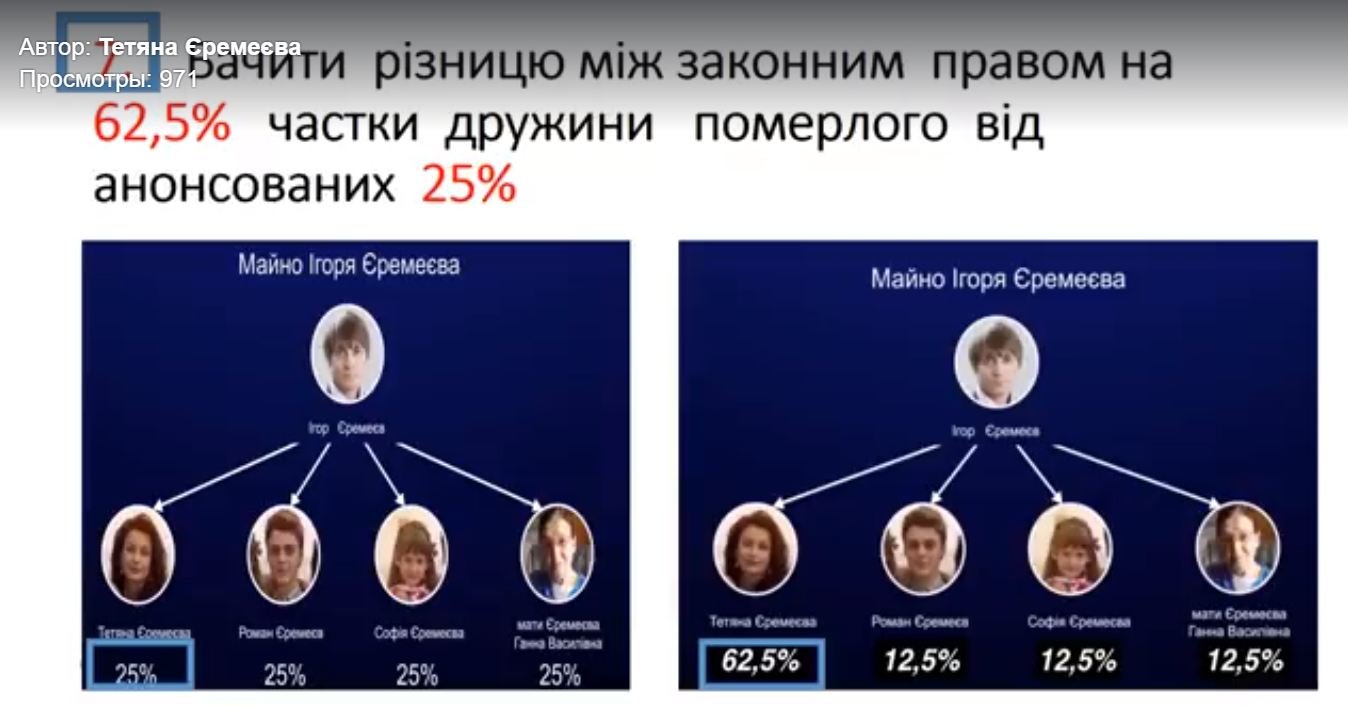 «Адже (компанія «Континіум», - ред.) офіційно визнала, що в далекому 2015 році забрала у сім'ї Єремеєвих всі 25% акцій групи. Пояснювати свої дії, ініційованими нами судовими процесами у 2017 році, і звинувачувати ефімерними конкурентами - вже абсолютно не потрібно, та і виглядає це смішно. Всі незаконні дії відбулись відразу після смерті - у серпні 2015року», - пише Тетяна Єремеєва та додає, що вона ігнорує тих, хто обговорює поведінку померлих, маючи на увазі екс-директора ДКП «Луцьктепло» Олександра Киричука, проти якого відкрили низку кримінальних справ.Також зауважує, що екс-партнери чоловіка маніпулюють ситуацією, заявляючи, що частка дружини померлого становить 25%, той час як реально вона становить 62,5%.Разом з тим додає, що наймані менеджери заявляють про готовність взяти на роботу її сина Романа, хоча насправді він є власником 25% бізнесу покійного батька.Нагадаємо, скориставшись шоковим станом 85-річної матері та вдови Ігоря Єремеєва Тетяни під час підготовки до похорону, його бізнес-партнери Степан Івахів та Сергій Лагур шляхом обману роздобули свідоцтво про смерть бізнесмена й відкрили спадкоємну справу у свого «підконтрольного» нотаріуса, яка була і є довіреною особою та обслуговувала інтереси групи компаній "Континіум". Таким чином вони одержали доступ до володіння й управління корпоративними правами, тобто до управління бізнесом, а законних спадкоємців, Тетяну Єремеєву та її дітей, просто усунули. Минулого місяця міністр юстиції Павло Петренко пообіцяв, що нотаріуси, з допомогою яких колишні бізнес-партнери Ігоря Єремеєва вкрали спадщину у його вдови та дітей, понесуть покарання.