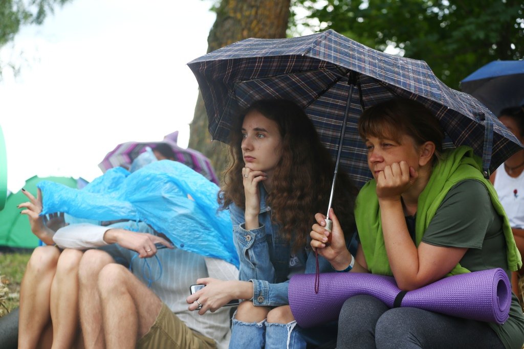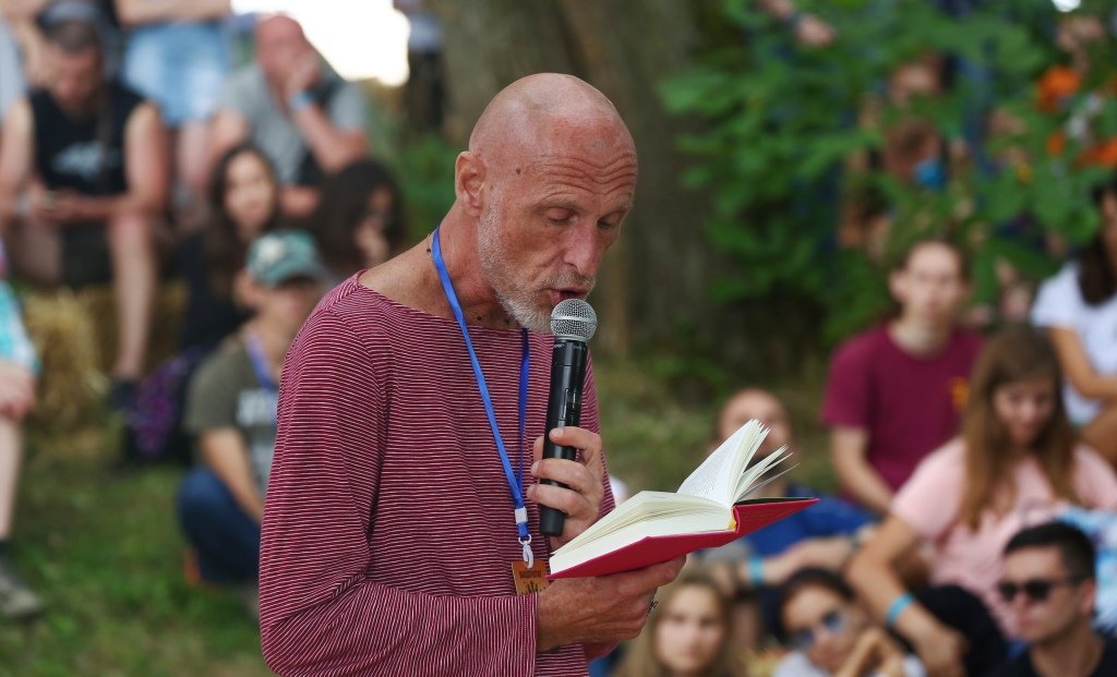 Він розповів, що з віком виникає бажання та потреба проповідувати, але під дощем не проповідував навіть Христос. Однак публіка просила не зупиняти гутірку через погодні умови. Відтак, поет спробував розганяти хмари книгою. Зрештою, дощ насправді ущух.