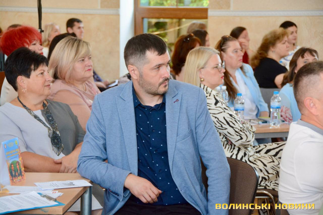 На заході також були присутні начальниця управління освіти Волинської обласної військової адміністрації Наталія Матвіюк, директор Волинського інституту післядипломної педагогічної освіти Петро Олешко, голова постійної комісії міської ради з питань соціального захисту, охорони здоров’я, материнства та дитинства, освіти, науки, культури, мови Оксана Лєщинська, представники структурних підрозділів Луцької міської ради.Читати ще: Треба близько 10 тисяч гривень: як у Луцьку батьки збирають дітей до школи
