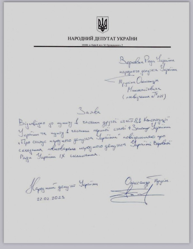 Написав заяву: Рада позбавила нардепа Трухіна мандата