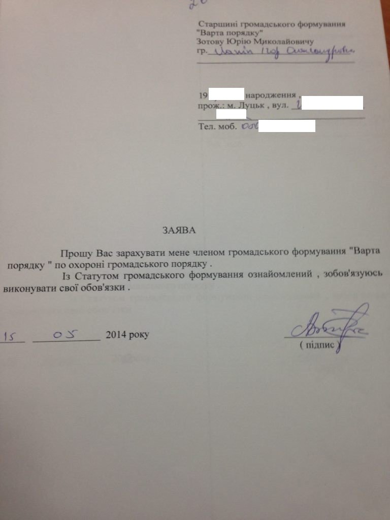 Варто відзначити, що сам же Лапін є членом цього громадського формування з 2012-го року. І те, що він особисто довіряє цій структурі, свідчить той факт, що в 2014-му році він поновив свою заяву та підтвердив бажання бути членом організації.Також, зі слів Олександра Волянюка, членами ГФ «Варта порядку» є працівники «Континіуму», зокрема особиста охорона нардепа Степана Івахіва, керівники департаментів та всі працівники департаменту економічної безпеки.