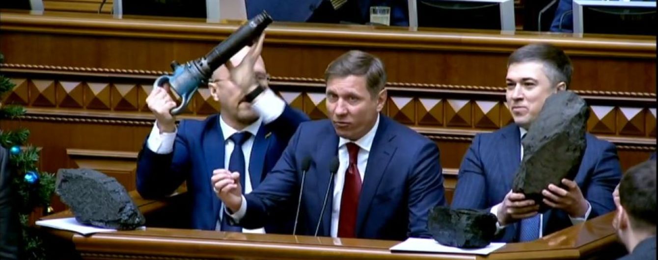 Народні депутати з груп «За майбутнє» та «Довіра», тримаючи у руках шматки вугілля та відбійний молоток, вимагали виплатити зарплату українським шахтарям, яку не видають вже пів року.