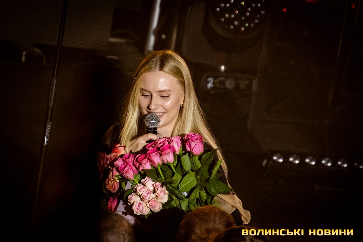 «Я дуже щаслива, що сьогодні маю нагоду стояти на цій сцені. Насправді я не вперше співатиму в Луцьку, але сольний концерт – то моє вперше, – зізналася співачка. – Вдячна вам за те, що прийшли сьогодні послухати мої пісні, поспівати разом зі мною. Ми, українці, за допомогою пісні єднаємося, підтримуємо одне одного й показуємо любов до своєї країни».
