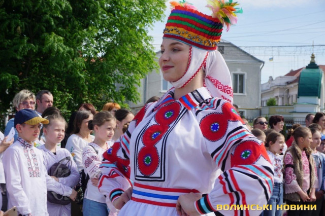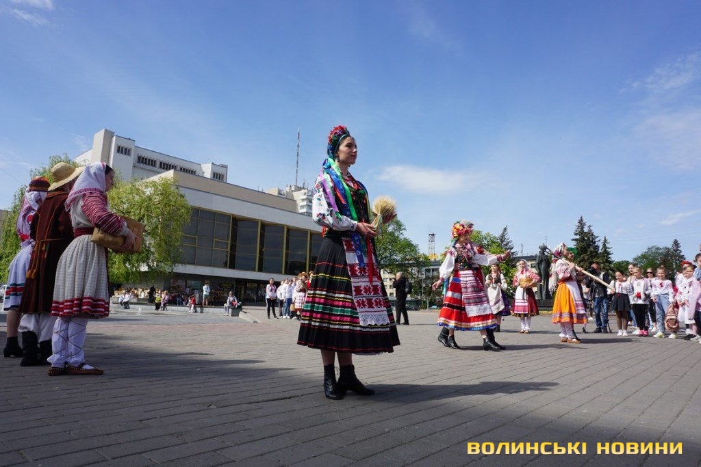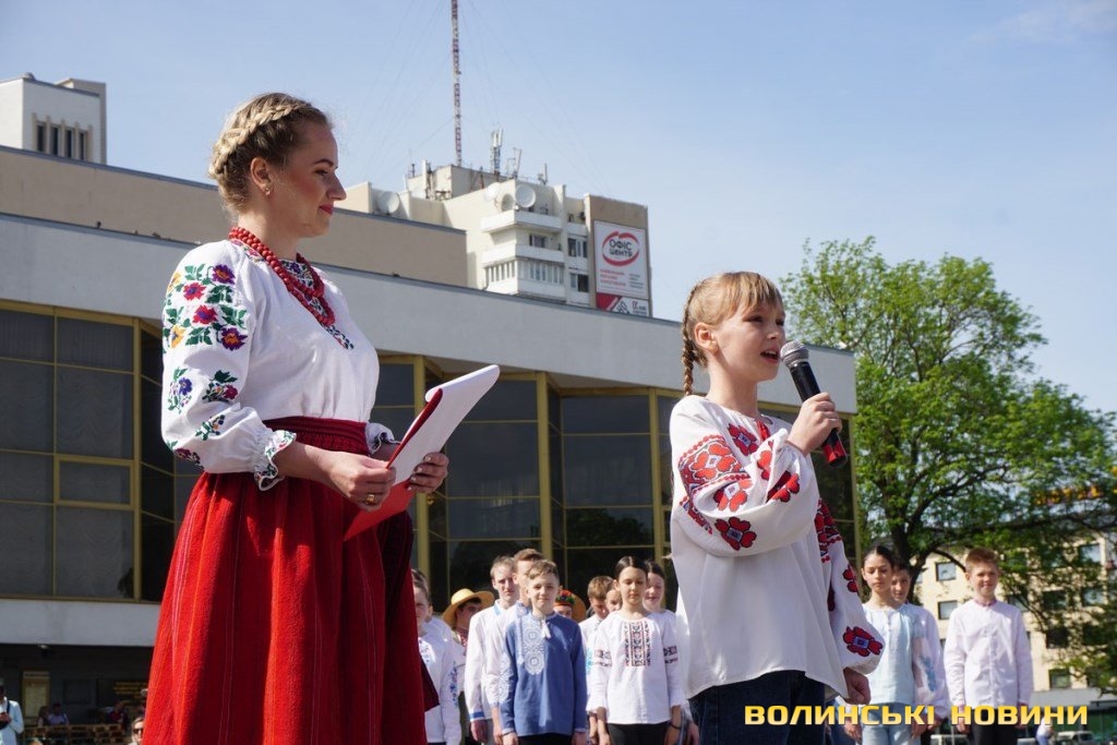 Оберіг українського народу має давню історію. Усі присутні на акції переконалися у цьому під час театралізованого показу етноколекції старовинних вишиванок з особистої збірки Олени Козачук. Саме з цього й розпочалося свято.Щемлива мить – дев’ятирічна Лора з Харкова читає вірш про Україну. Співуча українська мова – легко й невимушено лунає над Театральним майданом. Дівчинка хвилюється, але відчувається, що слова не завчені, а щирі.Продемонстрували свої таланти і діти вимушених переселенців, які відвідують арттерапевтичний центр Палацу культури. На майстер-класах спеціально до цього дня вони виготовляли витинані вишиванки та розфарбовували їх.Не обійшлося і без яскравих хореографічних номерів. За це щира подяка зразковому ансамблю танцю «Волиняночка» Палацу культури (керівник – заслужений працівник культури України Олена Козачук) та народному аматорському ансамблю танцю «Волинянка» (керівник – заслужений працівник культури Олег Козачук).Читати ще: «Вишиванка перемоги»: у луцькому університеті влаштували патріотичне свято. Фоторепортаж