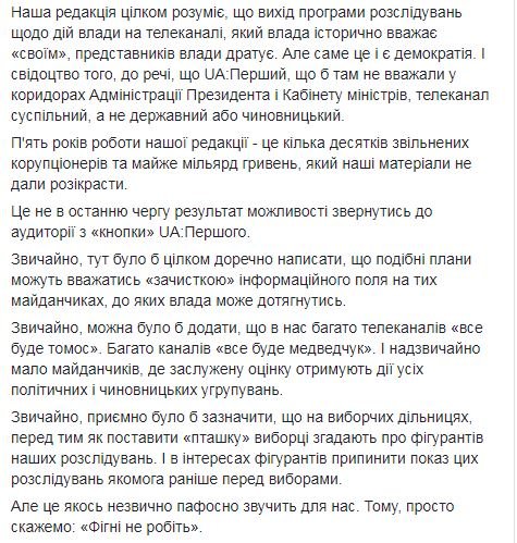 Програми «Наші гроші» та «Схеми», які провели десятки відомих розслідувань (в тому числі й проти нинішньої влади), можуть зникнути з ефіру UA: перший у зв’язку з виборами.