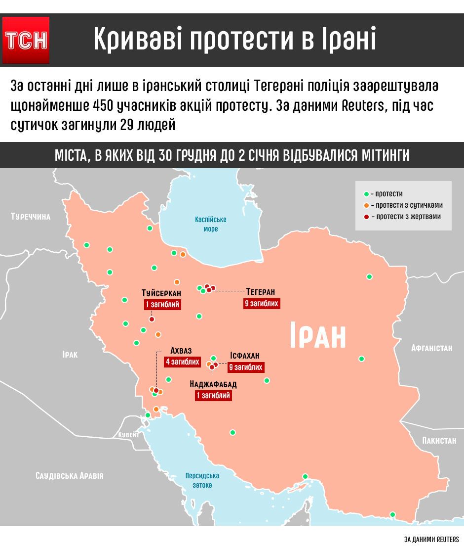 Наслідки протестів в Ірані: 29 загиблих, півтисячі затриманих
