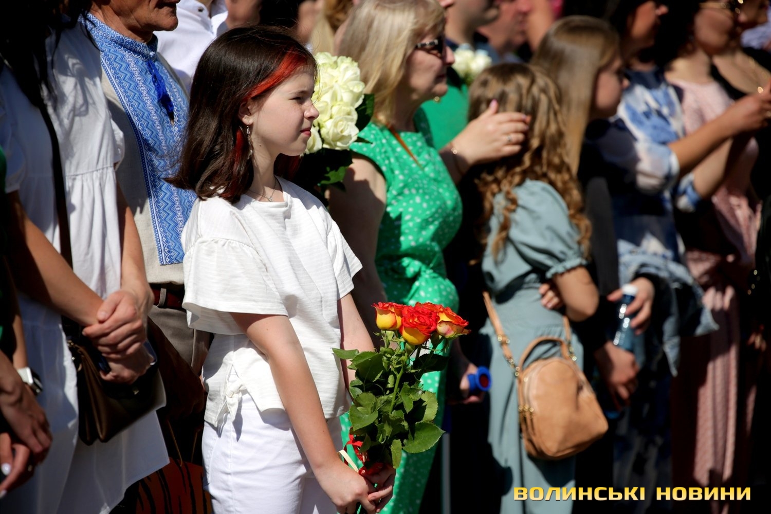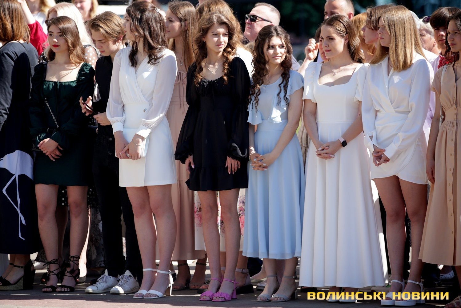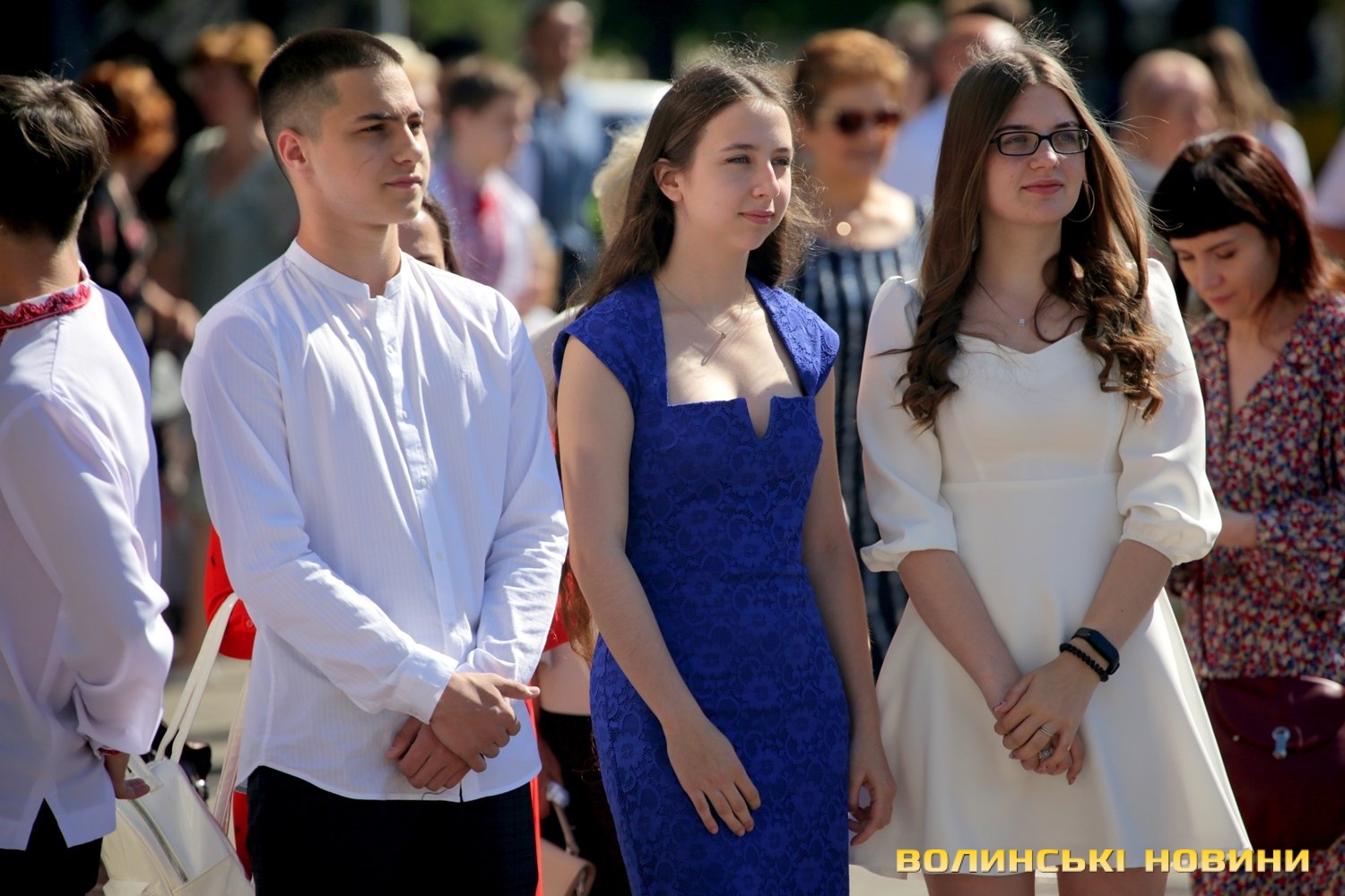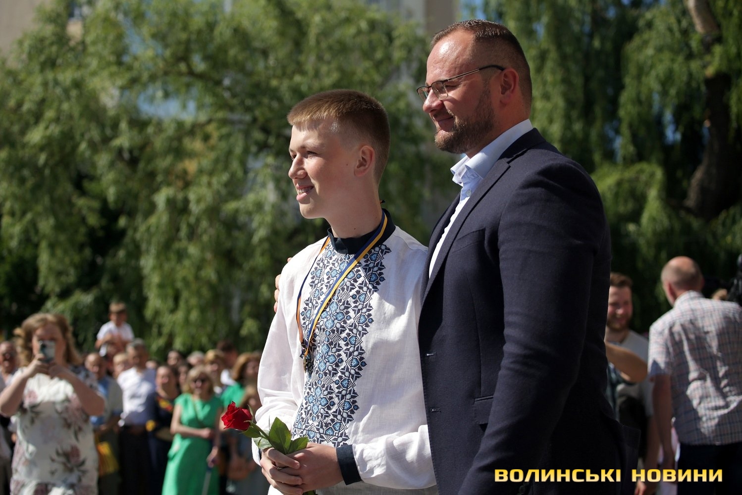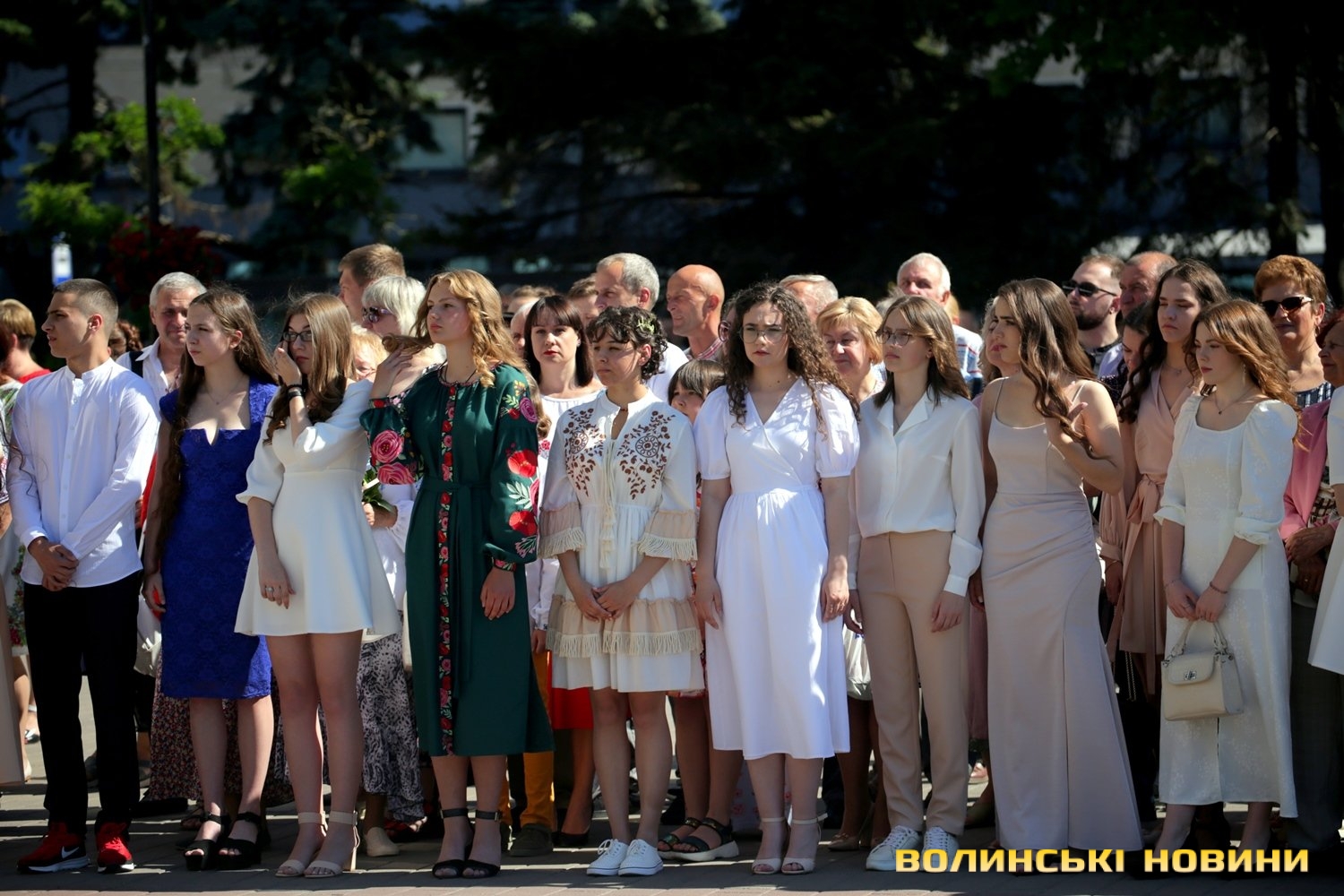 Привітати випускників у непростий час для країни прийшли батьки, рідні та друзі. Під час свята не забули про війну, вшанувавши хвилиною мовчання загиблих Героїв, які віддали життя за незалежність України.Луцький міський голова Ігор Поліщук також привітав випускників з успішним завершення навчання:«Навчання у школі – дуже важливий етап у житті людини. Я хочу вас по-особливому привітати, адже цей етап у вашому житті пройшов і завершився на відмінно. Сьогодні на цій площі стоять ті випускники, які були найбільш старанними, активними та працьовитими. Тому вони є у числі найбільш успішних. Якщо ви у майбутньому також будете викладатися на всі сто, то і в подальшому будете успішними».Окрім того, міський голова подякував вчителям, які ділилися з учнями знаннями, життєвою мудрістю, які вкладали у школярів частинку своєї душі, витрачали час, розкривали таланти учнів. Натомість батькам Ігор Поліщук подякував за виховання, мотивацію та настанови дітям.