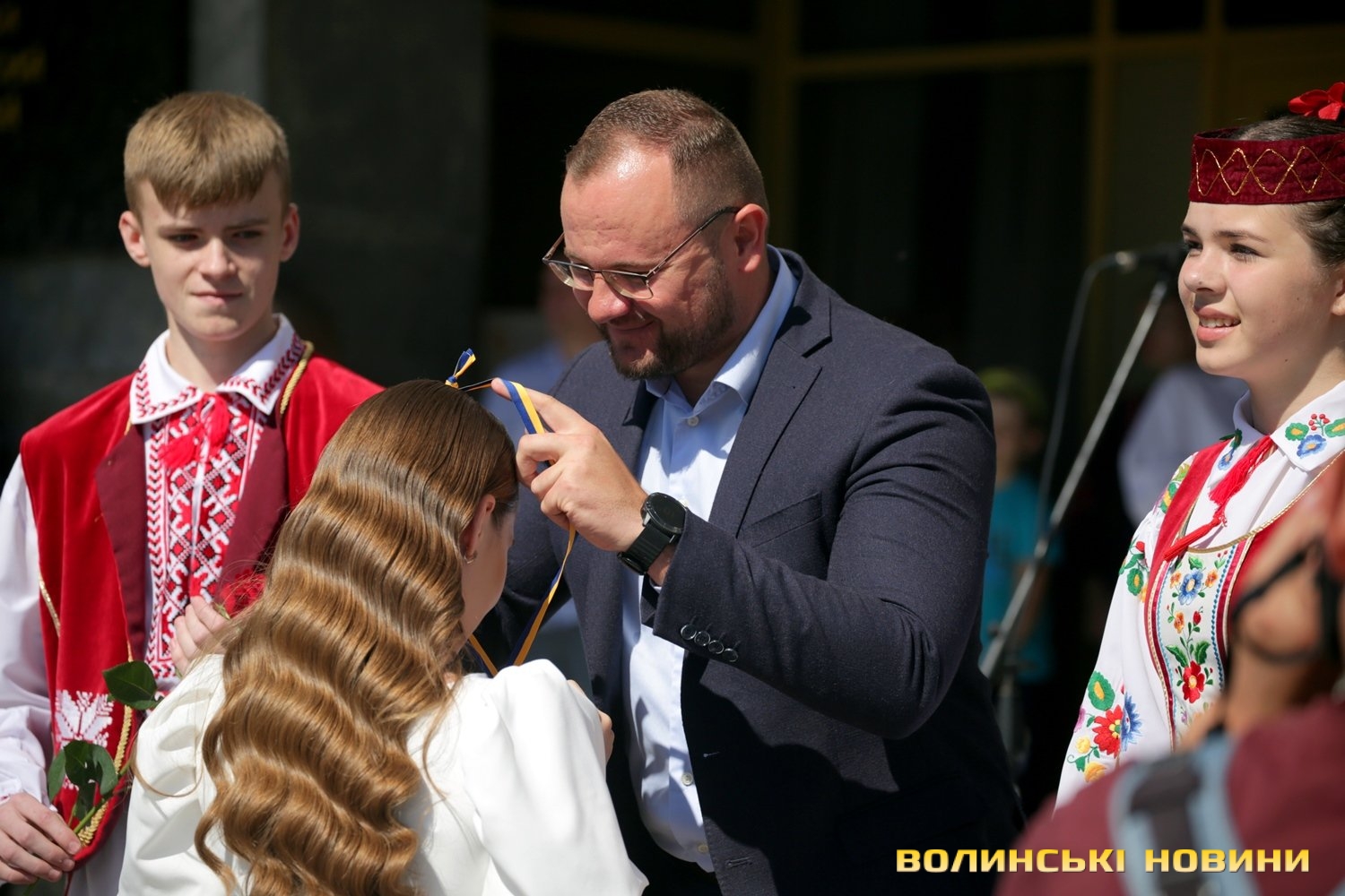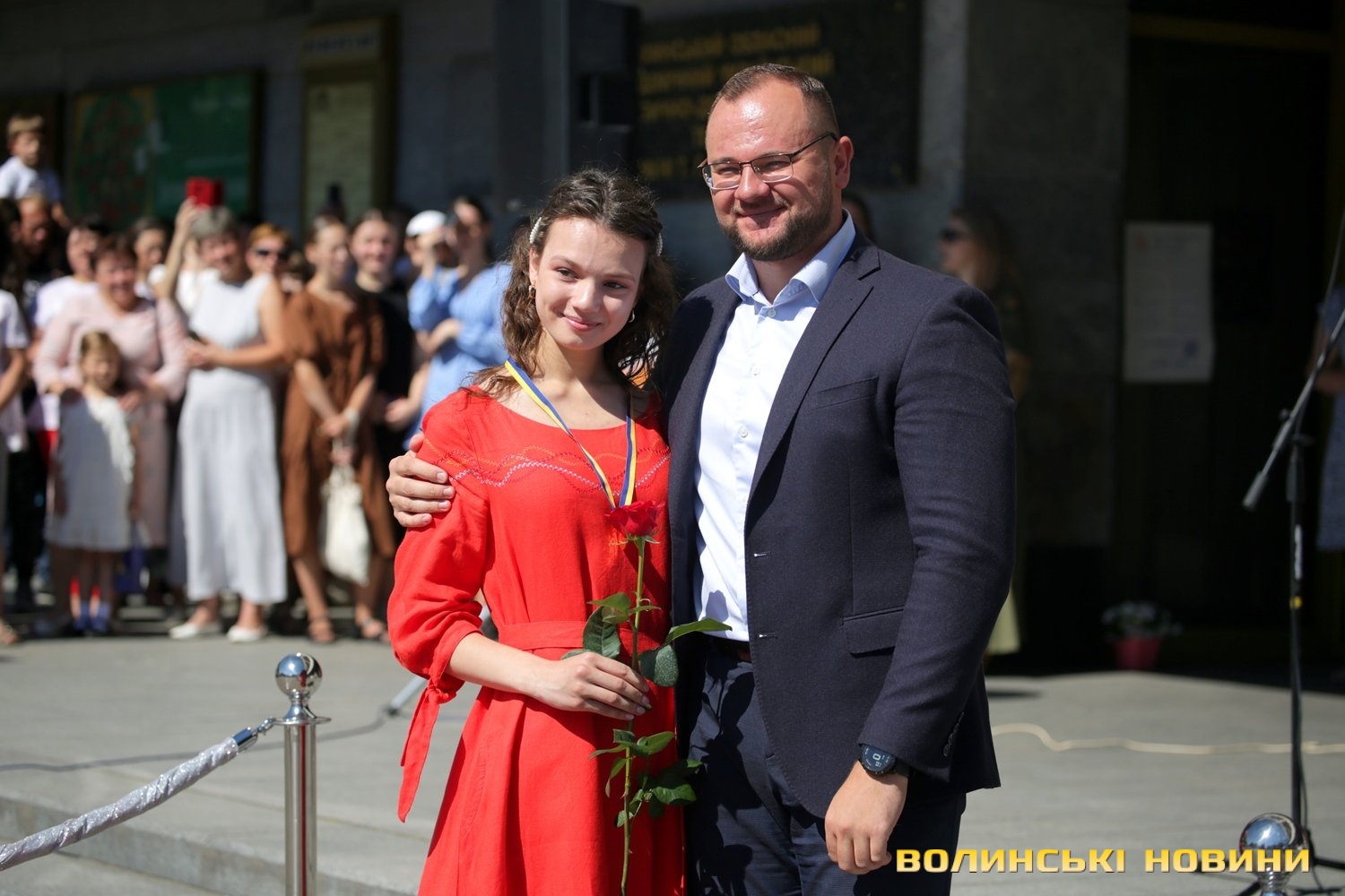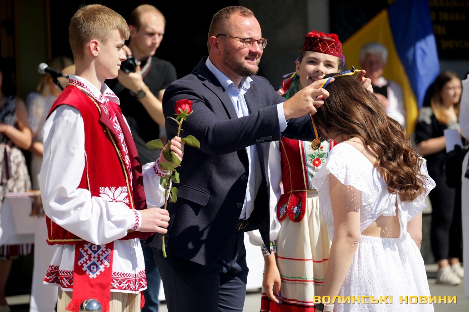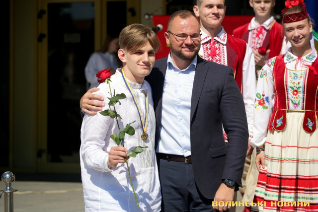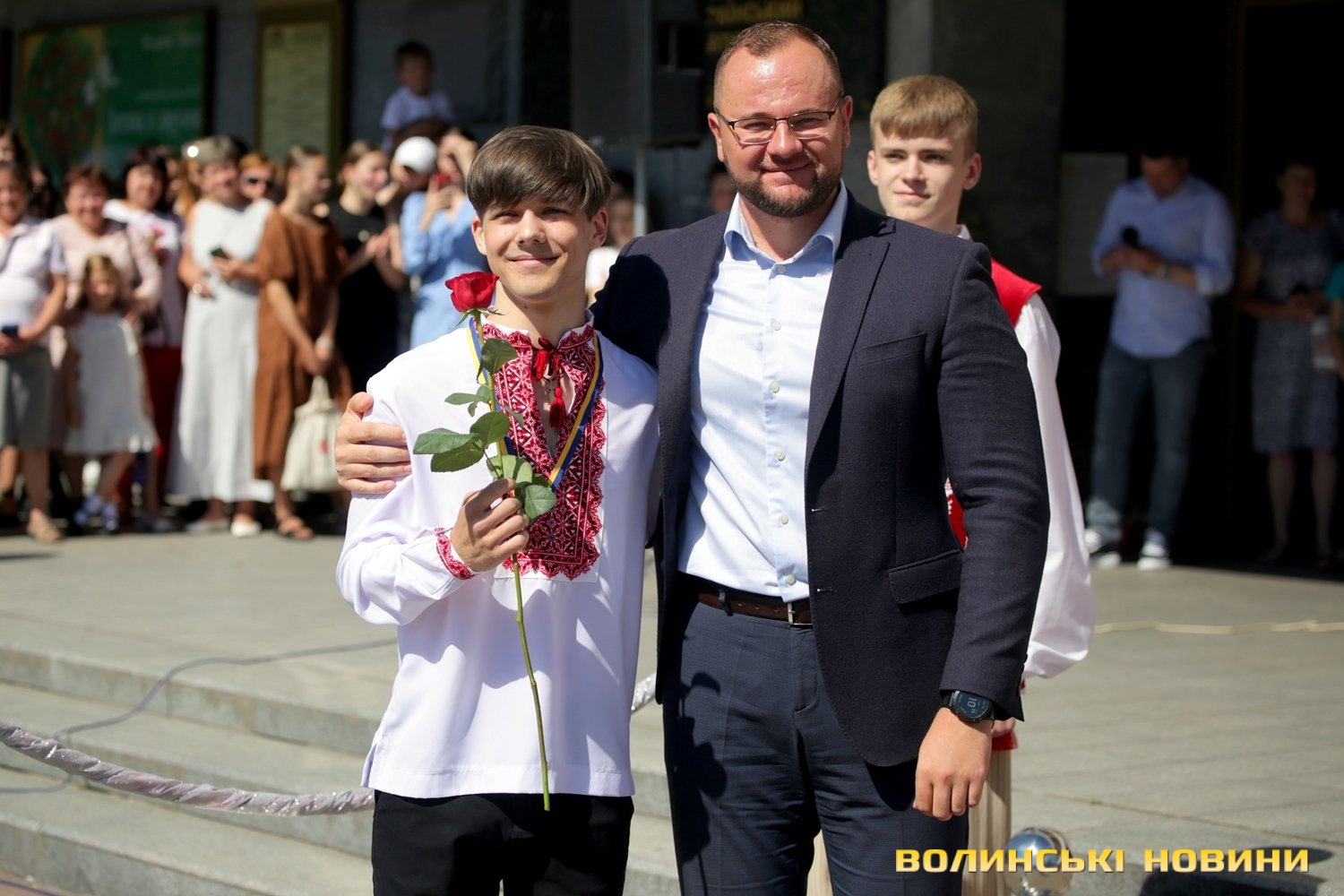 «На превеликий жаль, сьогодні наша подія і ваш важливий крок у житті відбувають в умовах війни. Але я переконаний, що Україна обов’язково вистоїть та переможе. Ваші наступні важливі кроки у житті будуть у процвітаючій, вільній та щасливій країні», – побажав Ігор Поліщук.Потому міський голова вручив заслужені медалі найкращим випускникам луцьких шкіл.