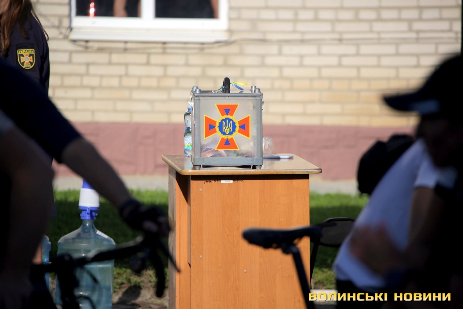 Попри це, біля Головного управління ДСНС у Волинській області зібралися десятки велосипедистів, аби долучитися до благодійного велопробігу. До слова, реєстрація коштувала 250 гривень.Начальник Головного управління ДСНС України у Волинській області Володимир Грушовінчук привітав учасників велопробігу: «Я вдячний усім учасникам, які беруть участь у сьогоднішньому велопробігу. Я бажаю вам, щоб ви подолали маршрут без травм, адже у цьому велопробігу будуть лише переможці, переможених не буде. Так само і Україна здобуде перемогу над агресором».Заступниця керівника Волинської обласної військової адміністрації Вікторія Левчук висловила сподівання, що наступний пробіг буде присвячений перемозі України.