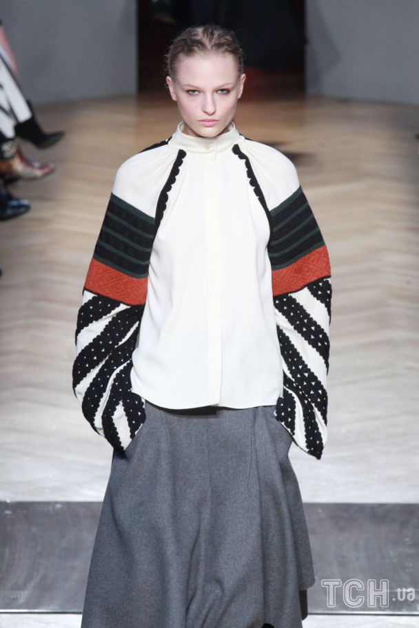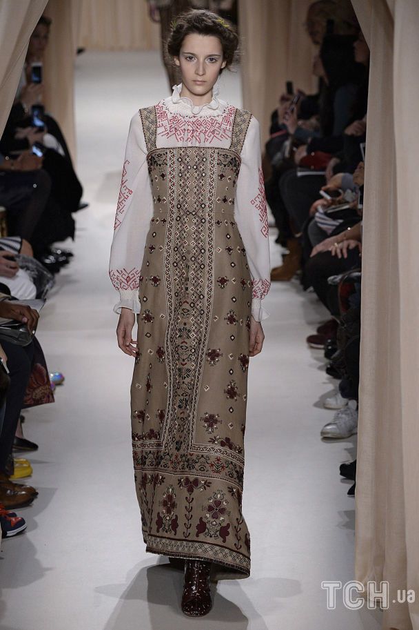 2016 року дизайнер бренду Sportmax Джамбатіста Валлі теж представив своє бачення етніки, коли моделі вийшли на подіум в обтислих білих блузах із широкими рукавами і орнаментом на них. Доповнили їхні образи важкі спідниці і пальта.