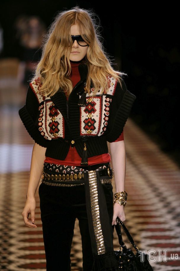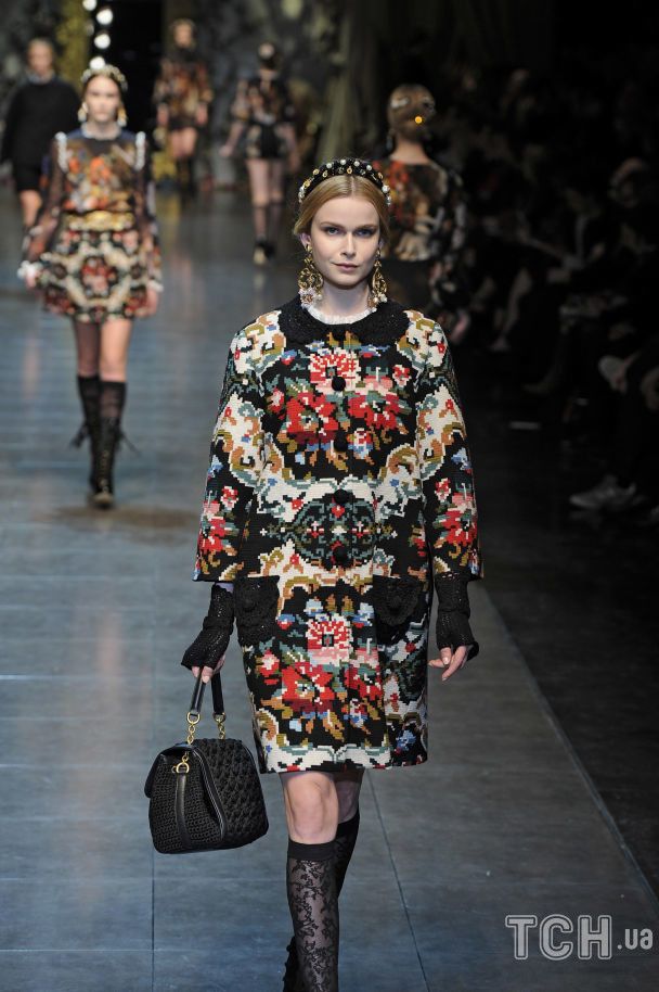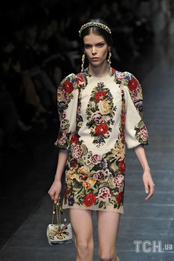 2012 року бренд Dolce & Gabbana просто підкорив серця своїх прихильниць з усього світу, коли моделі з’явилися в повністю вишитих вбраннях. За словами дизайнерів, вони надихалися в цій колекції стилем бароко і Сицилією, але все ж вбрання дуже нагадують килимову українську вишивку.Моделі на подіумі представляють вбрання з колекції Dolce & Gabbana осінь/зима 2012