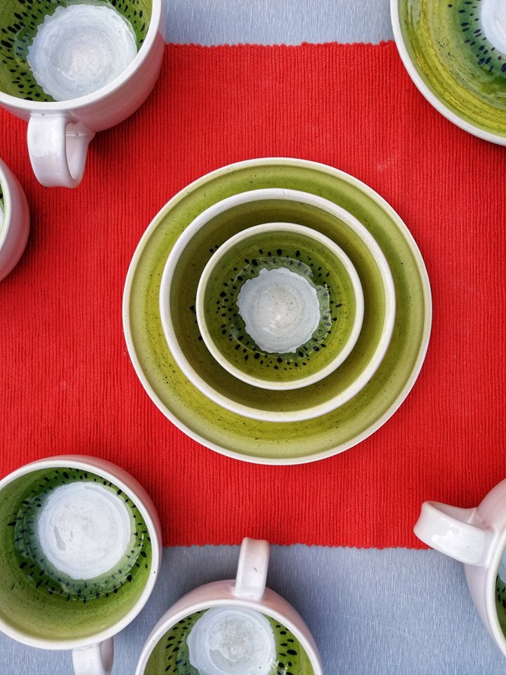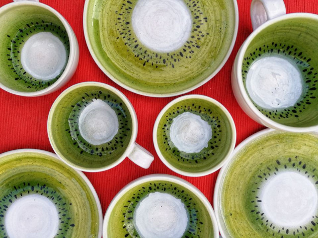 «Зараз працюю над новою колекцією. Це тарілки-квіти – тюльпани, ромашки, троянди, – каже вона. – Більша тарілка – у меншу, ще менша – у найменшу. Так виходить квітка. Люблю, коли посуд гарно складається. Естетика для мене дуже важлива».