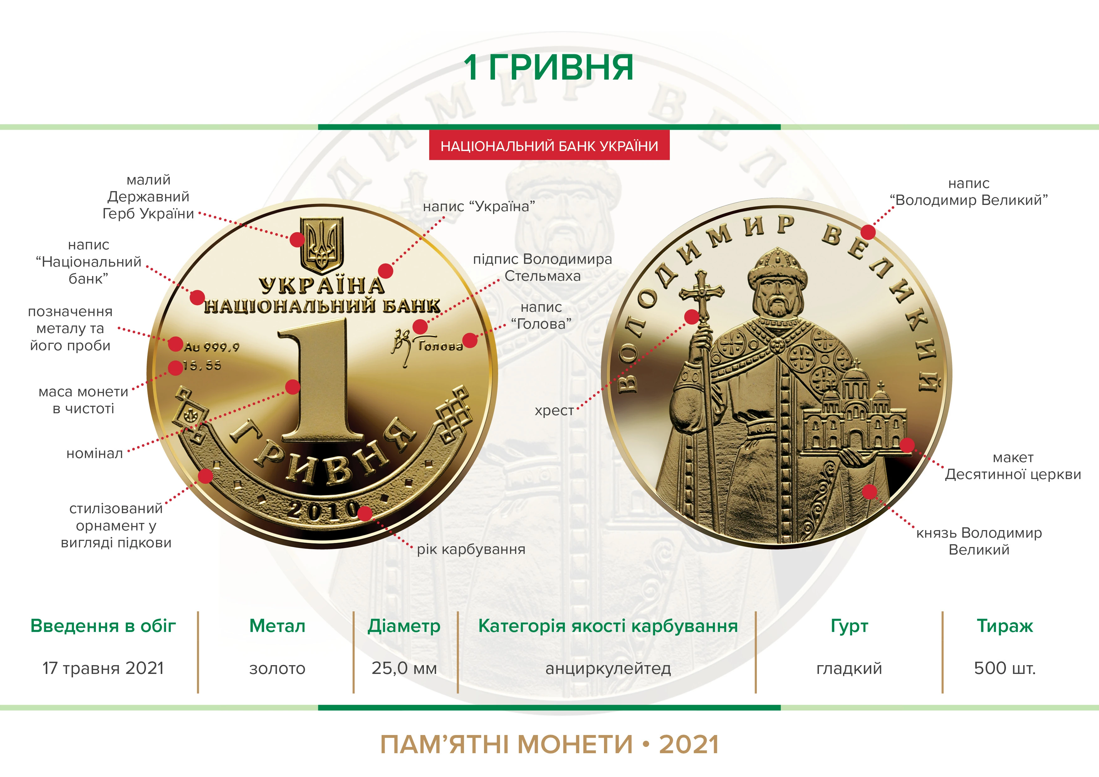 Нагадаємо, Нацбанк 17 травня 2021 року ввів в обіг золоту пам’ятну монету «1 Гривня», її виготовлено із золота 999,9 проби.