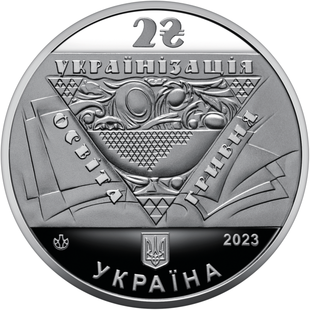 На аверсі монети розміщено: на дзеркальному тлі унизу – малий Державний Герб України та напис «Україна», праворуч – рік карбування монети – 2023, у центрі на тлі стилізованого майва прапорів – трикутник (віньєтка Георгія Нарбута), що символізує певний культурний та економічний розквіт Української Держави за гетьманату Скоропадського, який обрамляють написи: «Українізація» (угорі), «Освіта», «Гривня» (з обох боків); угорі на дзеркальному тлі – номінал 2 та графічний знак гривні; унизу – логотип Банкнотно-монетного двору Національного банку України (ліворуч).На реверсі монети розміщено: портрет Павла Скоропадського (праворуч), ліворуч від якого – композицію, що символізує події Української революції, угорі на дзеркальному тлі – роки життя «1873 – 1945»; унизу напис «Павло Скоропадський».