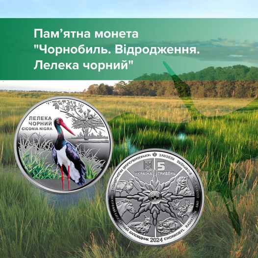 Сьогодні, в 38-му річницю Чорнобильської катастрофи, НБУ вводить в обіг пам’ятну монету «Чорнобиль. Відродження. Лелека чорний». Це – четверта монета з серії, присвяченої відродженню дикої природи на території Чорнобильського заповідника.