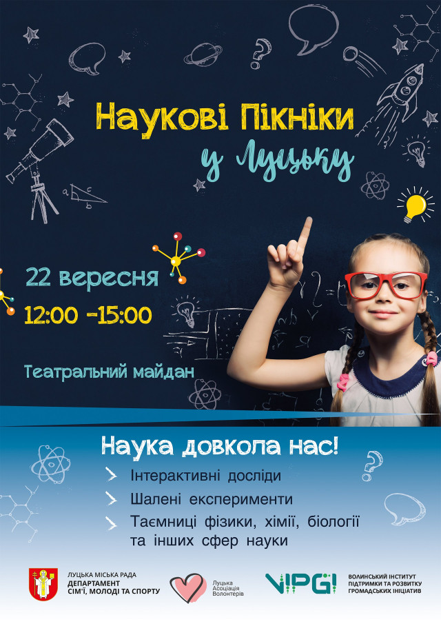Саме так, але не лякайтеся, адже мова про гарячу подію осені – Наукові пікніки у Луцьку. Запрошуємо усіх лучан завтра, 22 вересня на Театральний майдан, де з 12:00 до 15:00 ви зможете опинитися в атмосфері цікавої та доступної науки, надзввичайних дослідів, експериментів та розваг. До речі, буде ще й зона розваг для наймолодших та розіграші призів, повідомляють організатори.