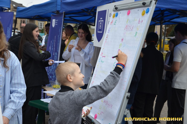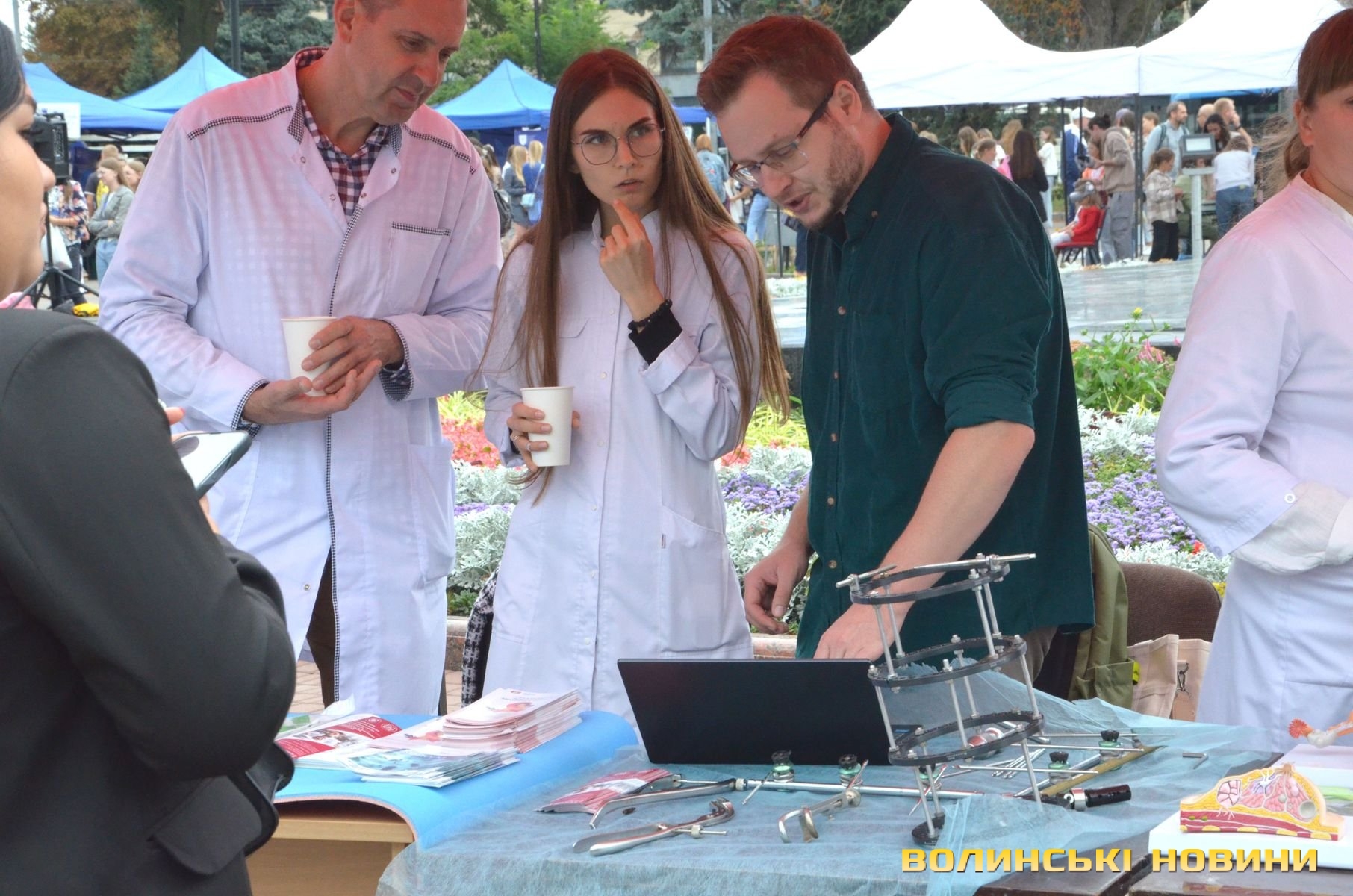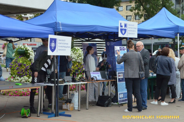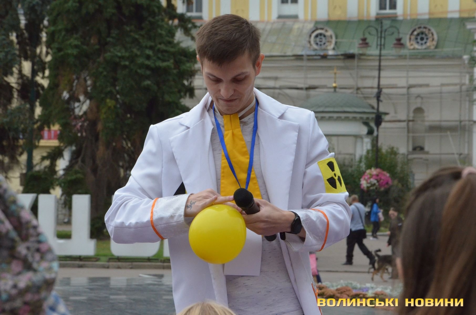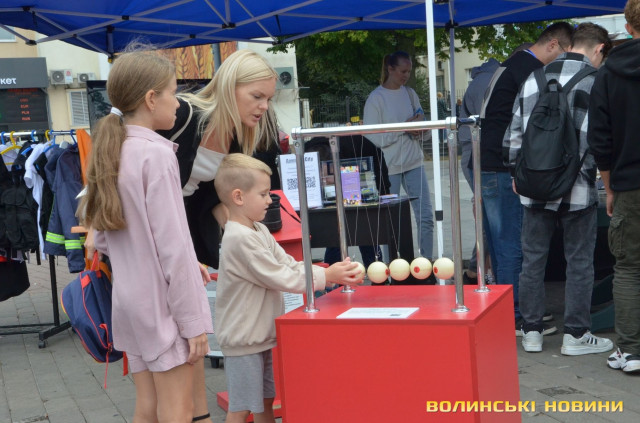 Незважаючи на дощову погоду, на Театральному майдані зібралося сотні містян. Показували цікаве про свою діяльність представники різних професій: освітяни, науковці, військові, надзвичайники, поліцейські, медики, фізики, хіміки, винахідники. Усі вони об’єдналися, щоб поінформувати лучан про щось нове.Читати ще: «Науковий пікнік»: у центрі Луцька діти опановували професії