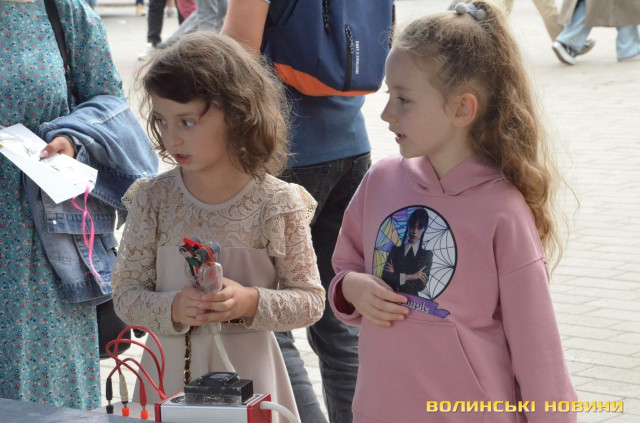Особливо насичено проводили час наймолодші відвідувачі, які буквально доторкнулися до науки та техніки руками. Адже під час заходу була й пожежна машина, куди можна залізти, і рятувальний одяг, що можна приміряти, і поліцейське спорядження, яке можна потримати. Був навіть котик, якого дозволяли погладити.Долучилися до «Наукових пікніків» вихованці Центру позашкільної освіти Волинської обласної ради та його очільниця Оксана Філіпчук. Показували новий гурток, що працює в STEM-лабораторії закладу, – управління безпілотниками. Охочих подивитися на диво техніки зійшлося чимало.
