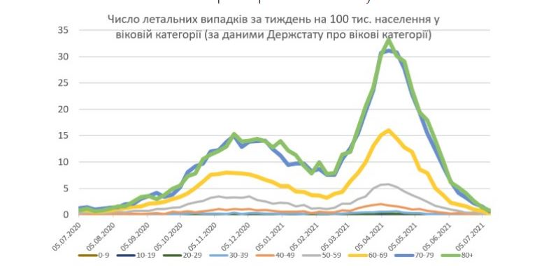 «У червні продовжила знижуватися загальна смертність разом зі зниженням числа летальних випадків при Covid-19. Загальна смертність знизилася з досягненням рівнів, нижчих за середній рівень 2015–2019 років, а також за рівень 2020 року. Отже, очікуваний рівень смертності за сценарію, якби коронавірусну інфекцію була просто зараз повністю зупинено, ймовірно, нижчий, ніж у той самий період будь-якого з попередніх років, починаючи з 2015 року», – йдеться в повідомленні.