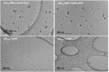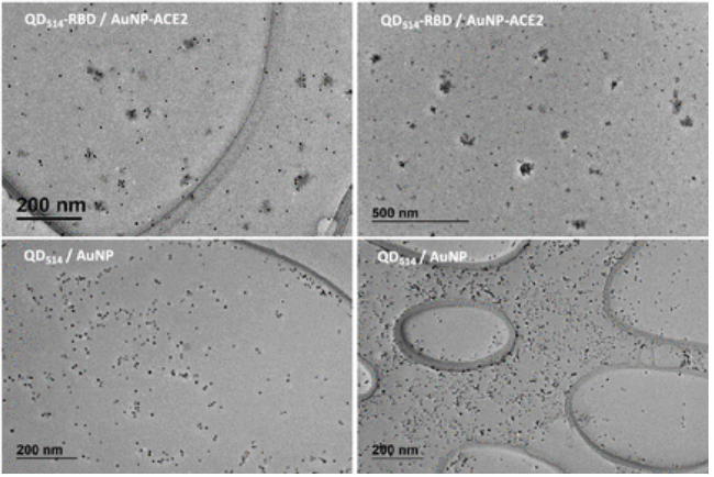 Для свого дослідження вчені сконструювали штучну вірусну частинку SARS-CoV-2 – псевдовіріон. До нього прикріпили квантову точку – частинку матеріалу розміром кілька нанометрів, близьку за довжиною хвилі електрона в цьому матеріалі.Ця конструкція взаємодіяла з людською клітиною, ACE2-рецептори якої були мічені зеленим флуоресцентним білком. Коли шипиковий білок зв’язувався з клітинним рецептором, квантова точка контактувала з флуоресцентним білком. Це, своєю чергою, викликало гасіння флуоресценції, яке можна було спостерігати.
