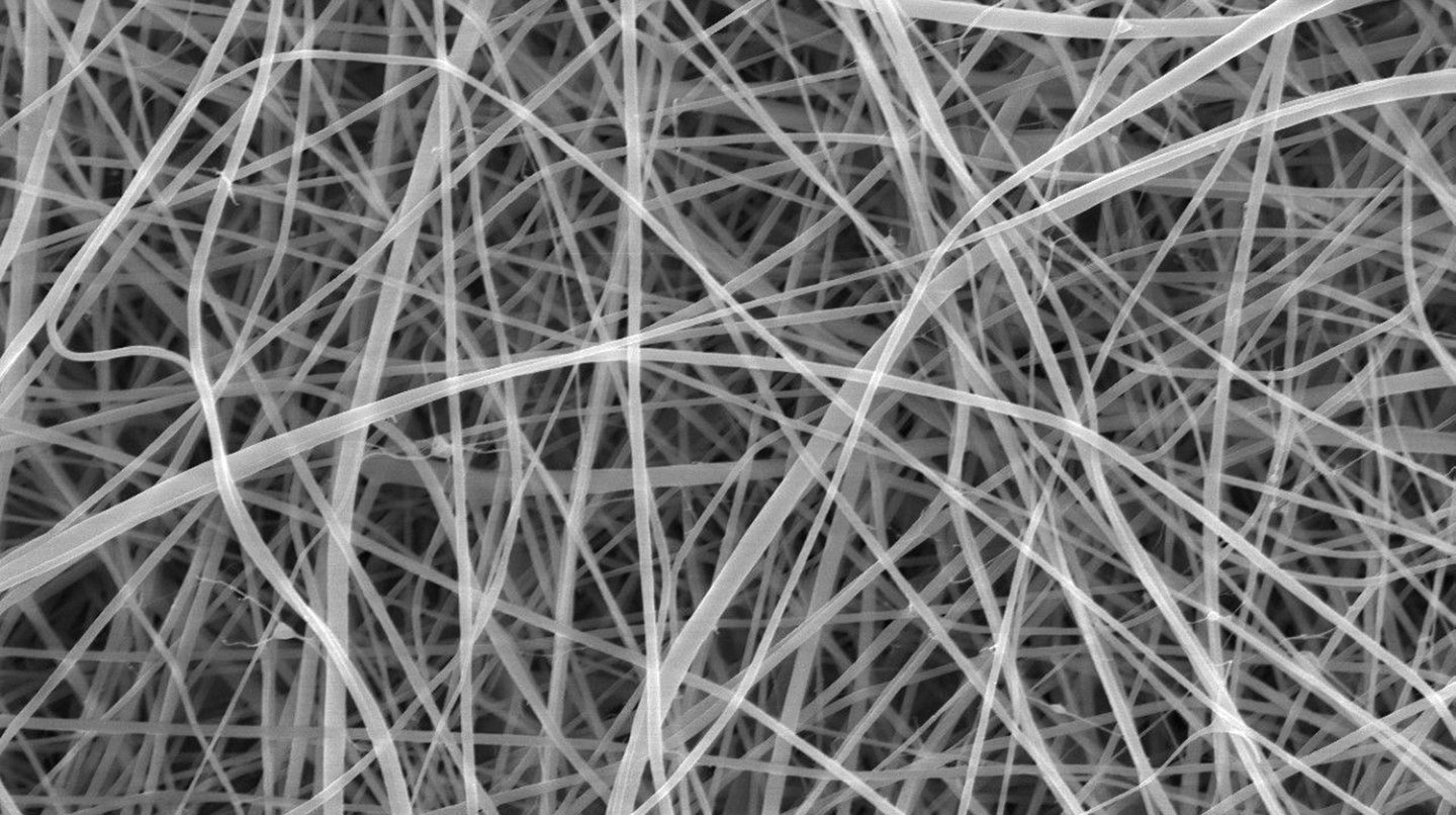 Нановолокнами називають будь-який волокнистий матеріал завтовшки менш як 100 нанометрів (один нанометр дорівнює мільярдній частині метра).