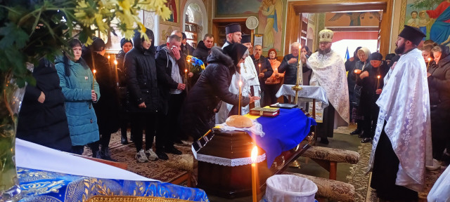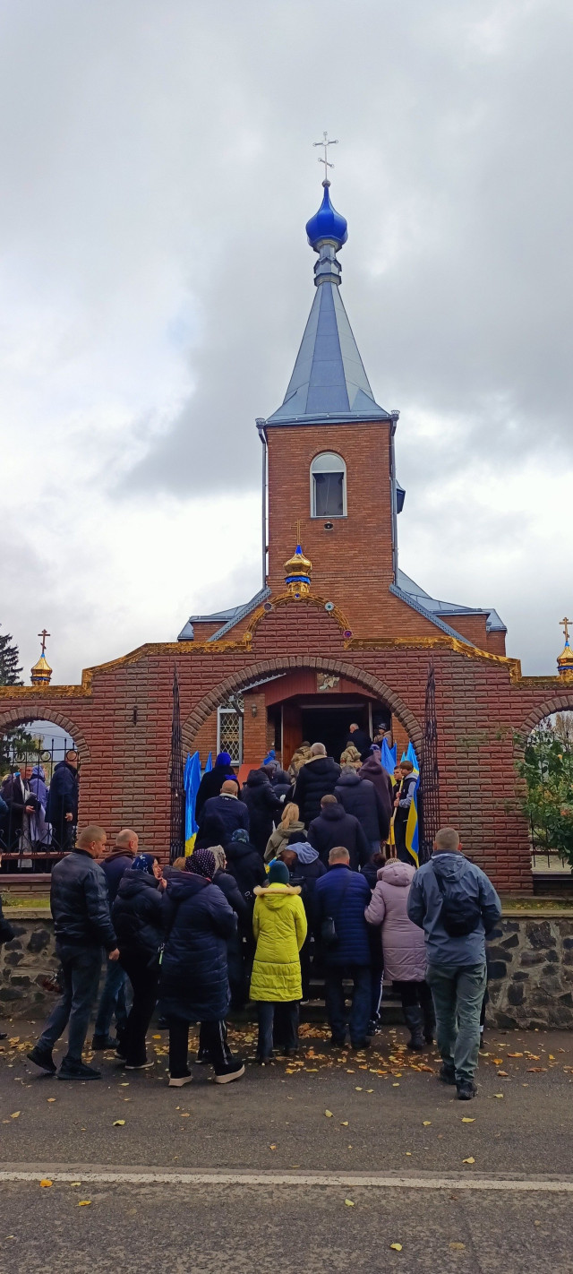 Піша колона прямувала до дому, де священнослужителі відслужили літію. У супроводі духового оркестру Героя проводжали до храму Різдва Іоанна Хрестителя, де у спільній молитві було звершено чин похорону.