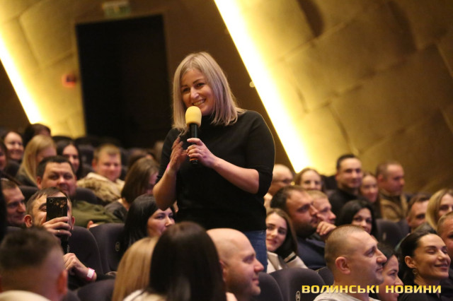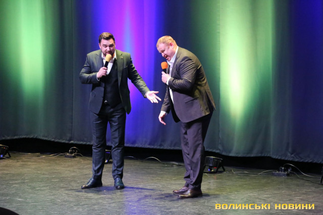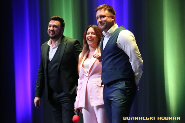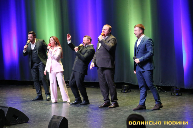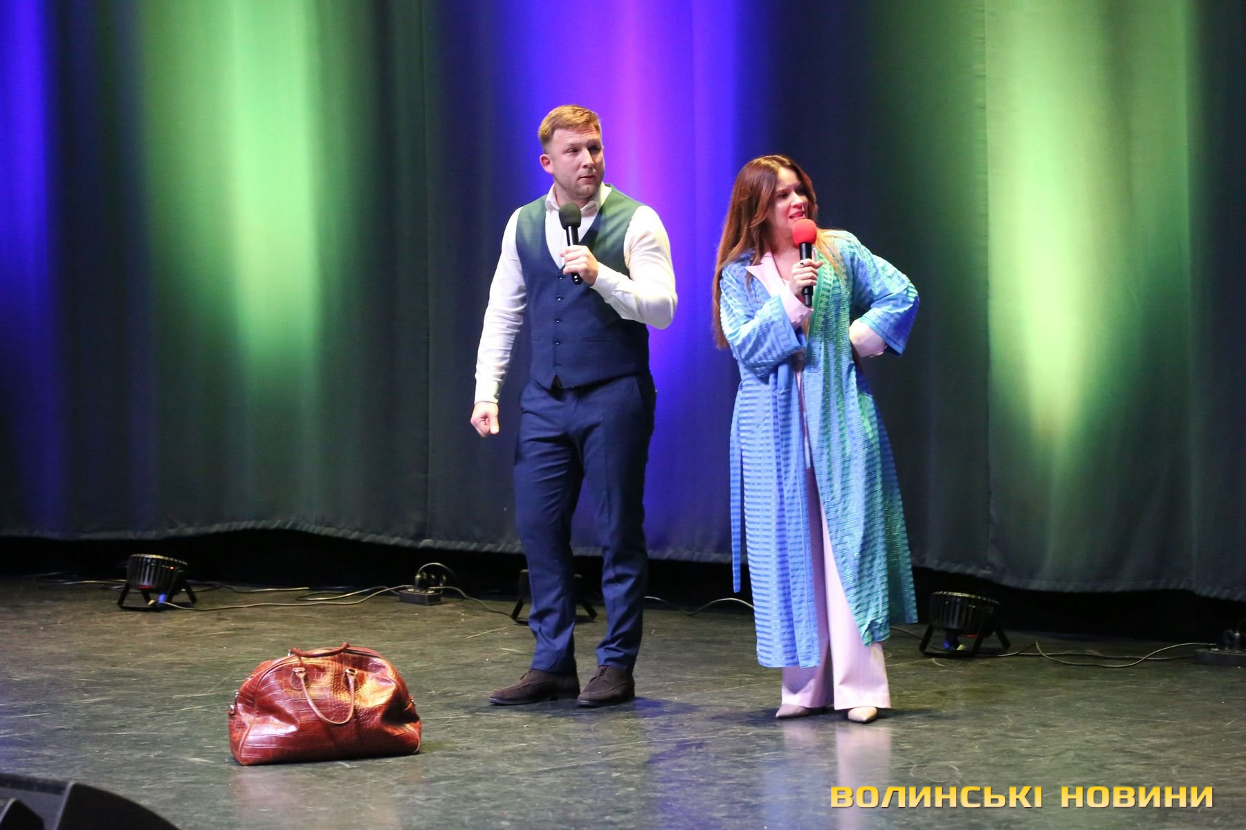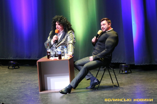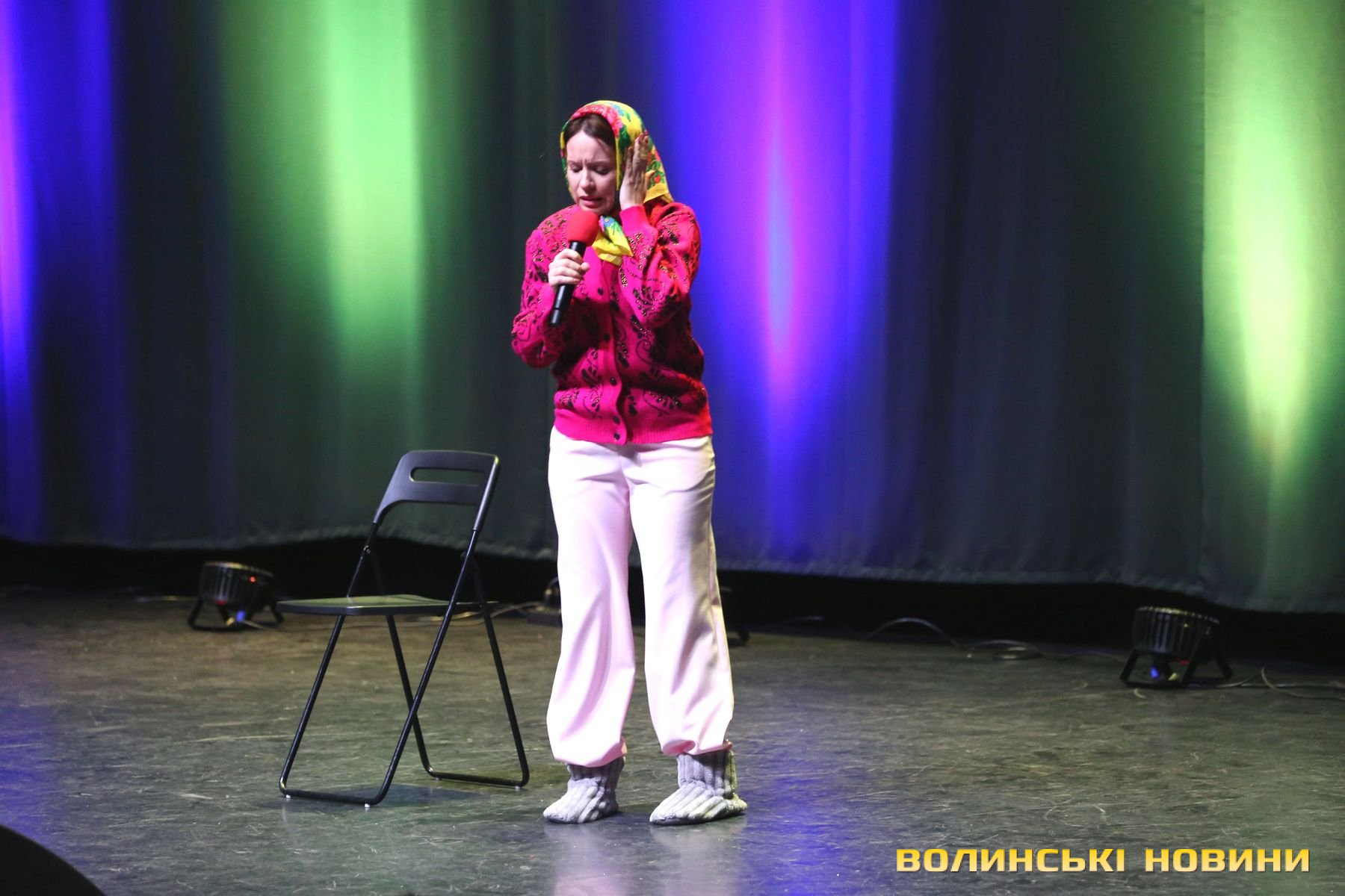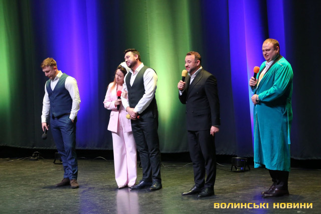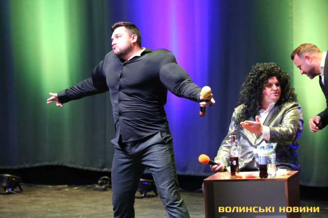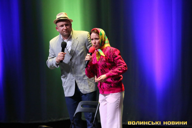 Показали й пародію на телеведучу Марію Єфросиніну, яку зіграла Інна Приходько. Цей номер нещодавно був в ефірі «Ліги сміху». За ідеєю журналістка брала інтерв’ю в голови ГУР Кирила Буданова.Фіналізували виступ номерами про сільську школу, у якій навчався один учень, і про гримерну, у яку заходять зірки перед концертом. В останньому спародіювали зірок української сцени: Іво Бобула, Віталія Козловського, Ольгу Полякову, DREVO та інших.Читати ще: Легендарний національний хор імені Григорія Верьовки виступив у Луцьку. Фоторепортаж