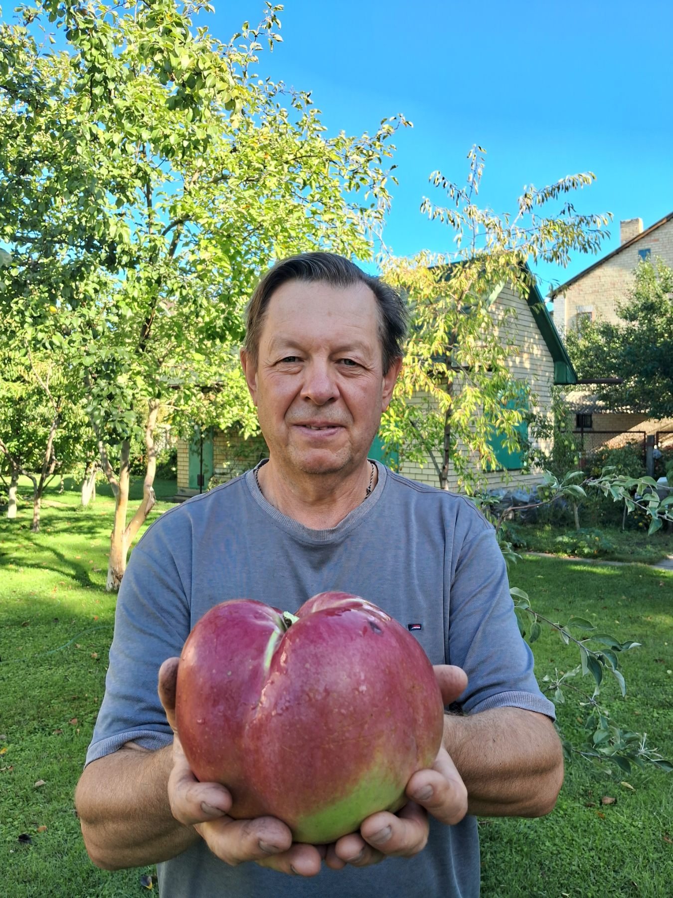 63-річний киянин Юрій Кожем'якін виростив яблуко завважки понад 1,2 кілограма – фрукт-гігант внесли до Національного реєстру рекордів України.